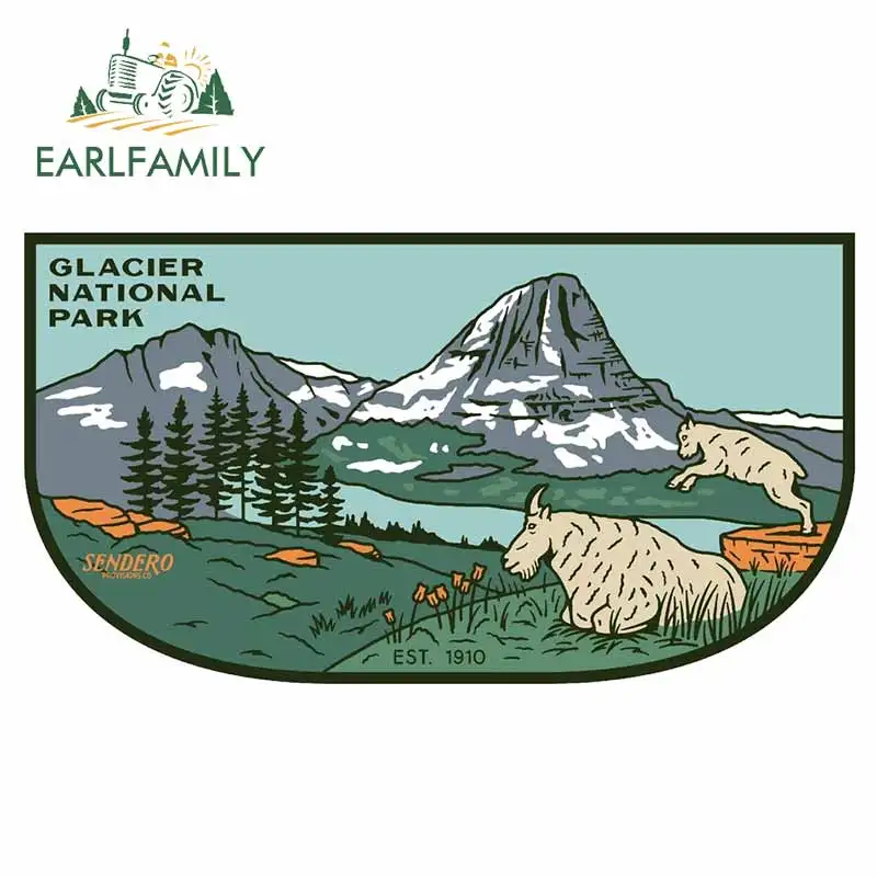 EARLFAMILY, 13 см x 7,2 см, для ледника, национального парка, виниловые наклейки на машину, материал, наклейка, доска для серфинга, устойчивая к царапинам, для JDM SUV RV