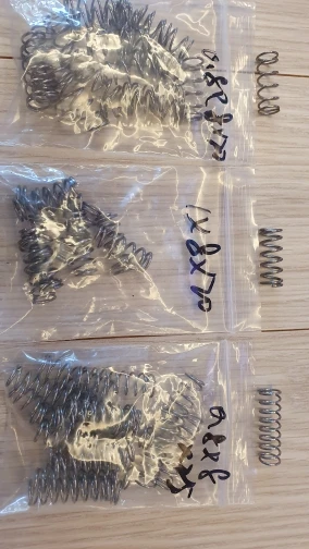 Доставка за 10 дней. Количество верное. Пружины качественные. Для сжатия пружины 50 мм на половину усилие 1 кг