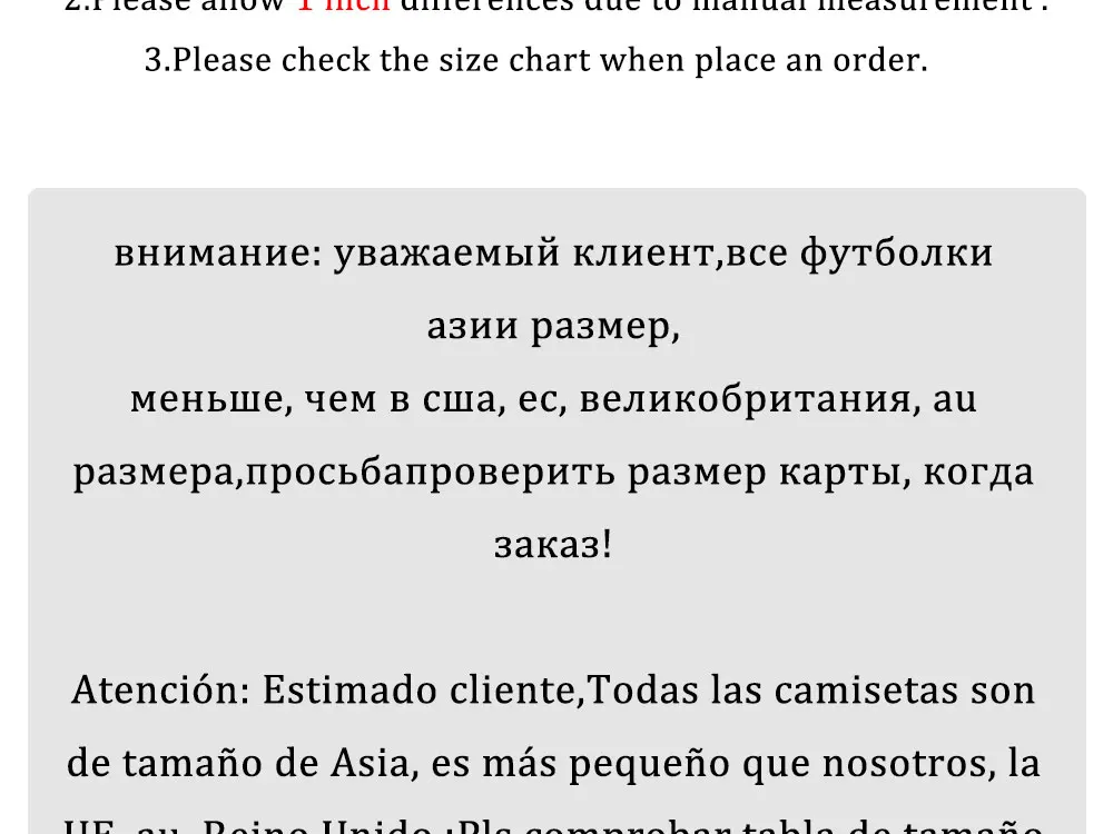 3. Пожалуйста, проверьте таблицу размеров при размещении заказа.