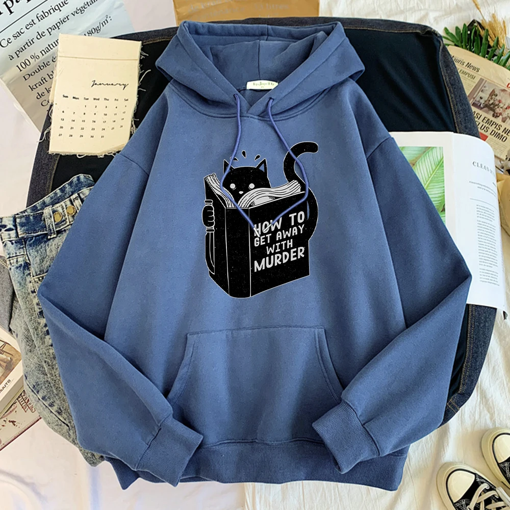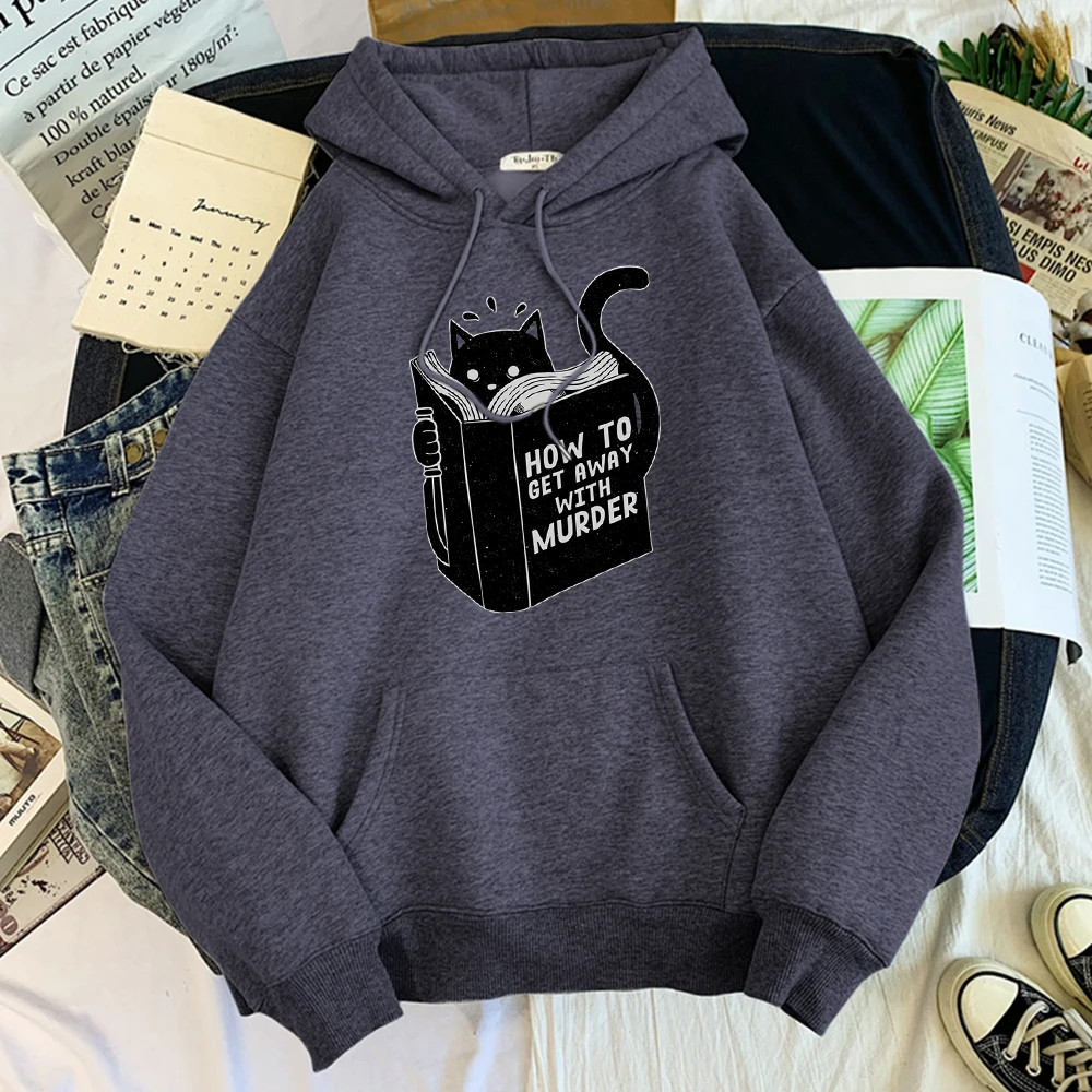 Толстовка с капюшоном, черная кошка, книга для чтения, как сойти с рук, свитшот для мужчин, Harajuku, одежда, теплый большой спортивный костюм для мужчин