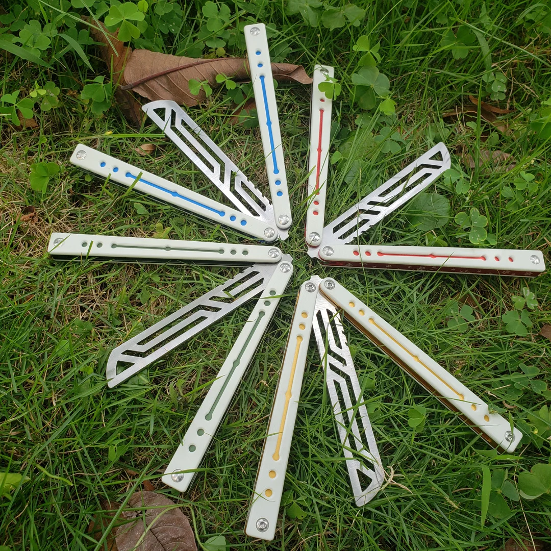 Нож-бабочка Nautilus, рандомный нож, попугай, белый канал, алюминий + Ручка G10, лезвие 440, система втулок, тактический нож