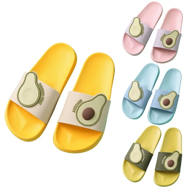 Женские и мужские летние Нескользящие тапочки; Милые домашние пляжные сандалии ярких цветов с открытыми носками и фруктами авокадо