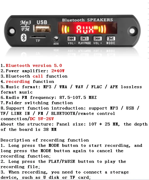 6W 50W Amplifier Handsfree MP3 Player Decoder Board 5V 12V 18V Bluetooth 5.0 Car FM Radio Module Support FM TF USB AUX Recorders