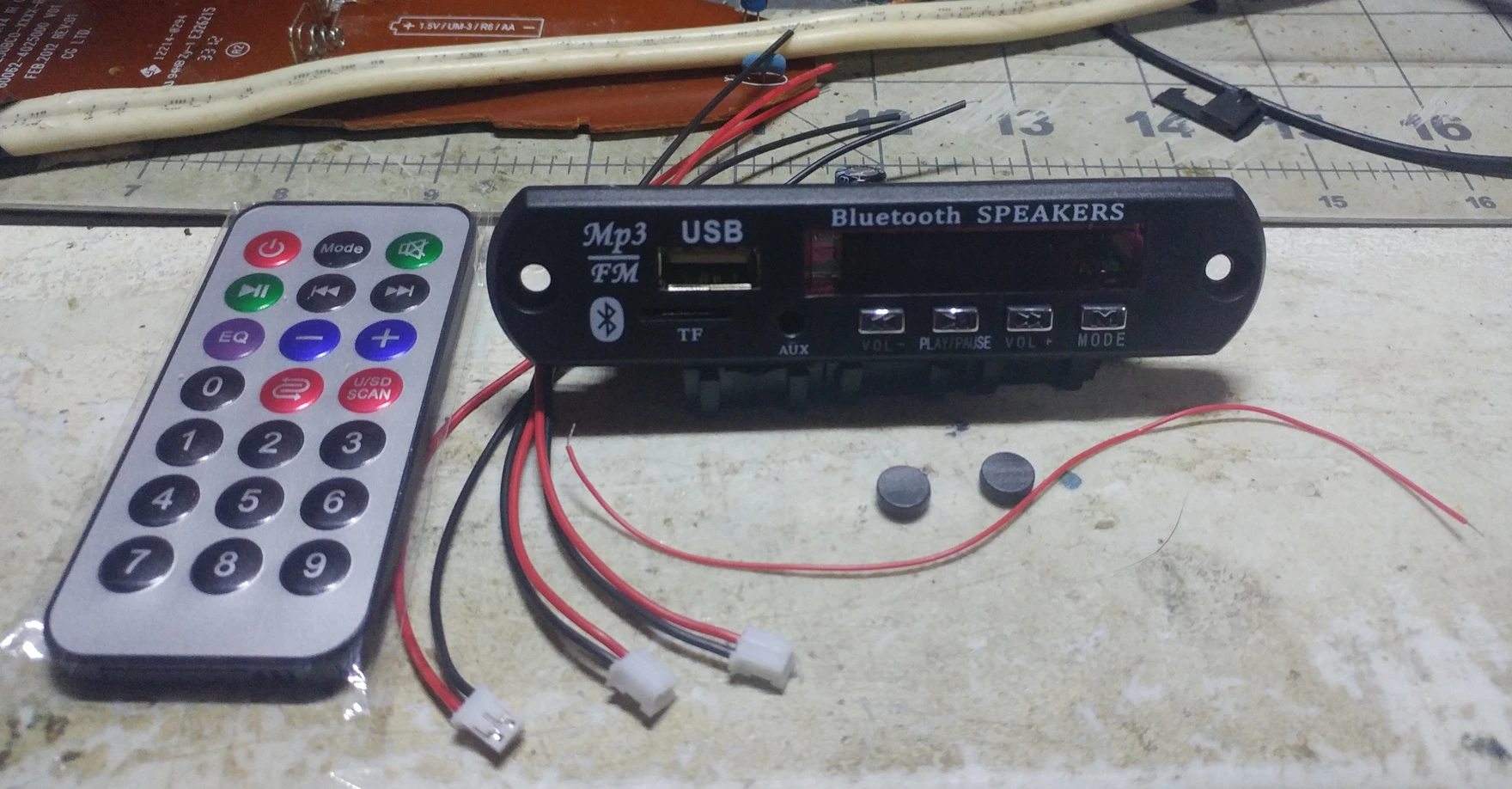 Всё хорошо, даже радио ловит прилично. Для меня один недостаток - нет режима проигрывания в случайном порядке, только повтор. Быстрая доставка. Совет производителю. Модуль рассчитан на установку только на лицевую сторону аппаратов. Для установке на верхнюю сторону дополнительно нужна собирательная линза для приема ИК сигнала. Иначе приходится ставить наклонное самодельное зеркало (любой зеркальный материал).