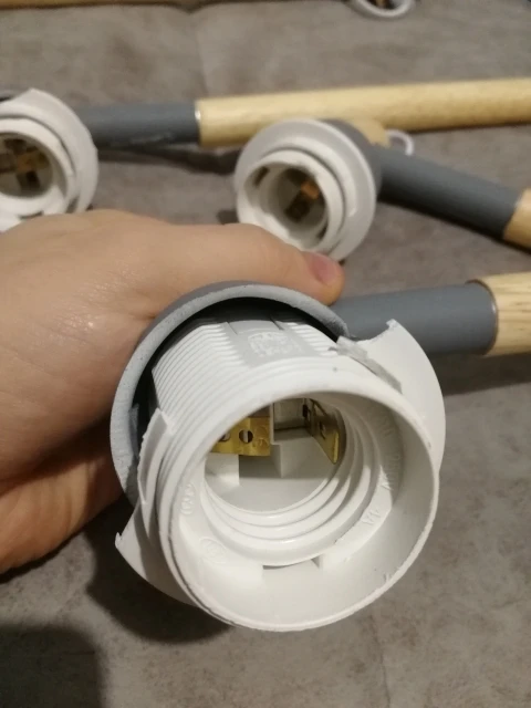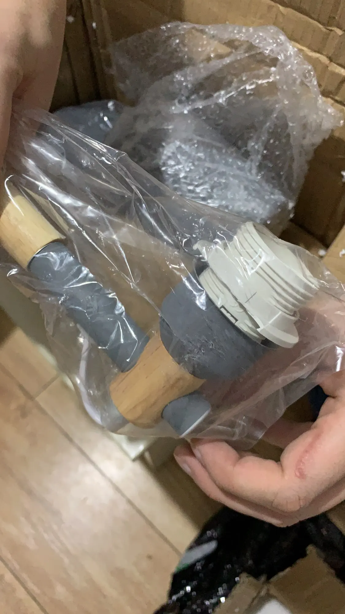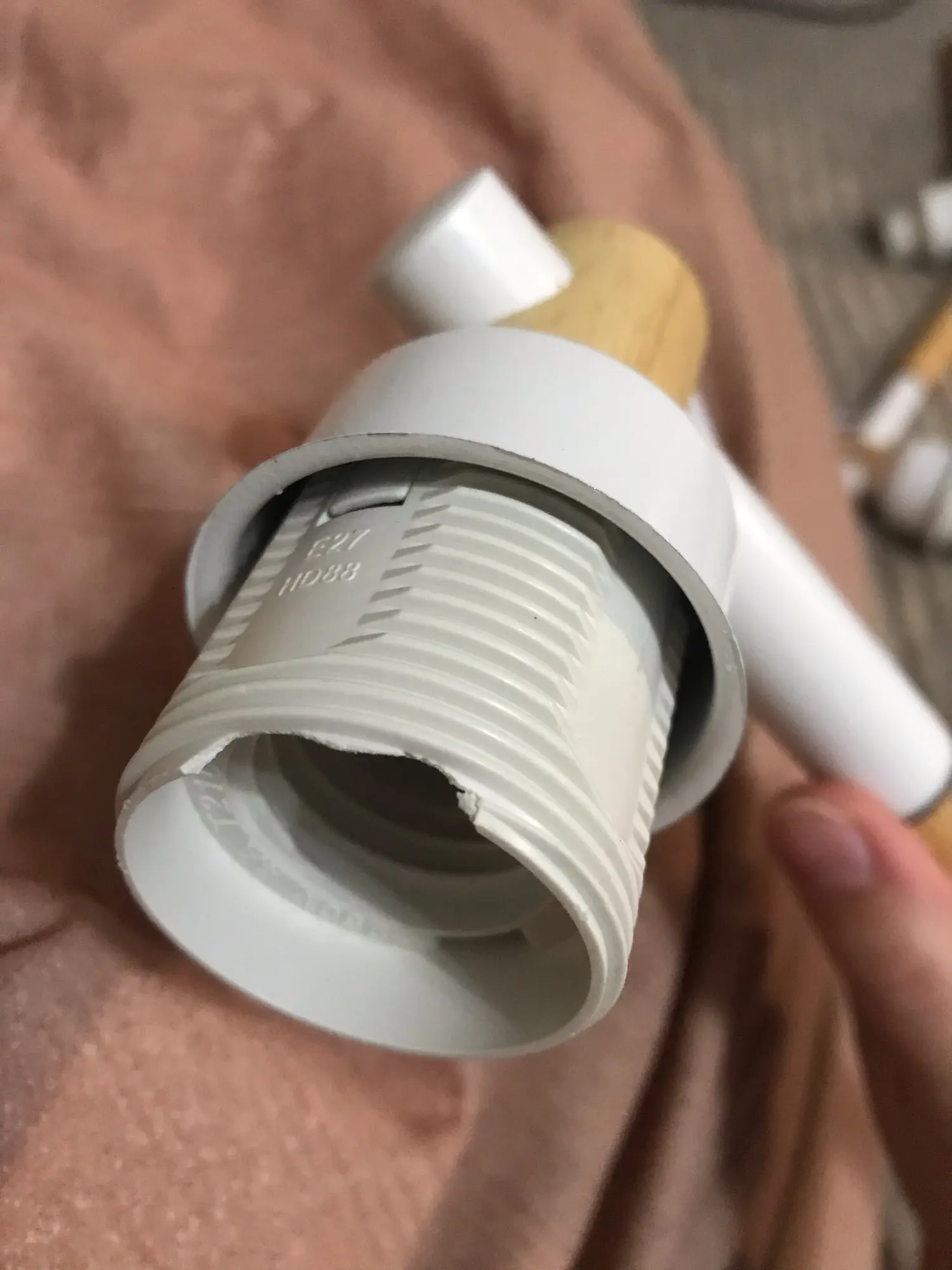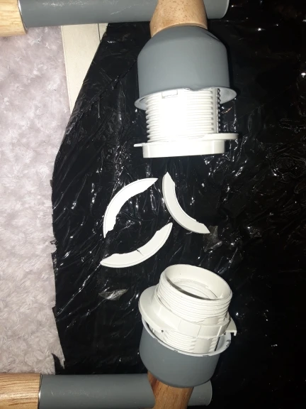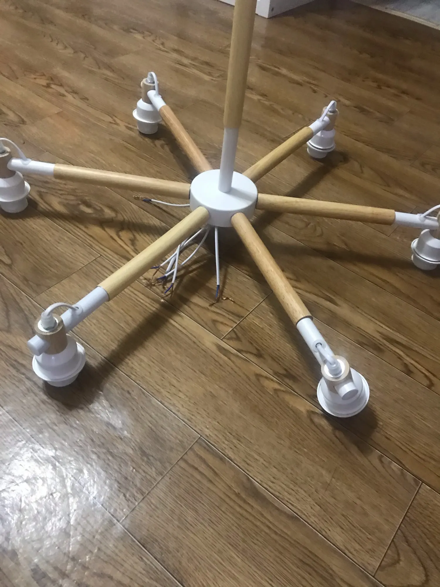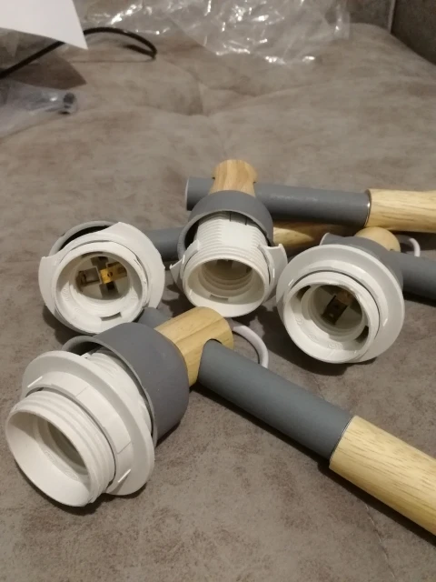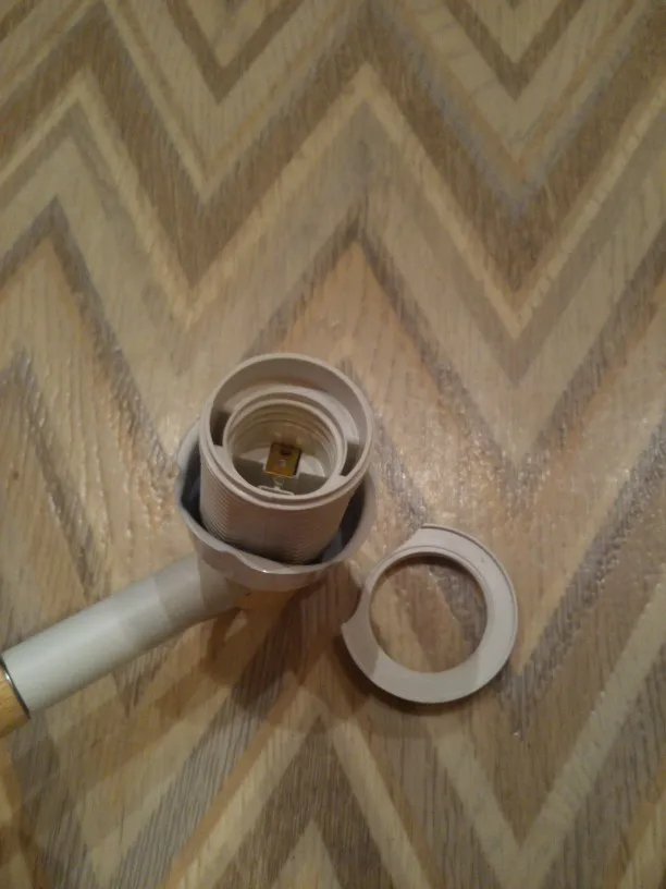 Вот так пришла одна люстра, патрон в хлам, соответсвенно люстру не собрать, т.к на 6 плафонов, с 5тью будет не симметрично. Написала продавцу чтоб выслал замену детали, надеюсь ответит и пришлют иначе буду требовать возврат денег.