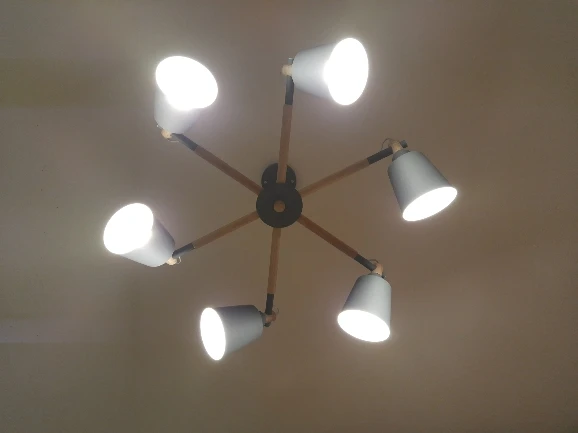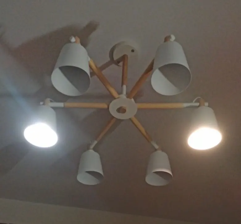 Лампа красивая, все приехало целым, без потертостей и повреждений. Но металлические плафоны смотрят только вниз, поэтому для яркости я сняла плафоны. Смотрится тоже не плох