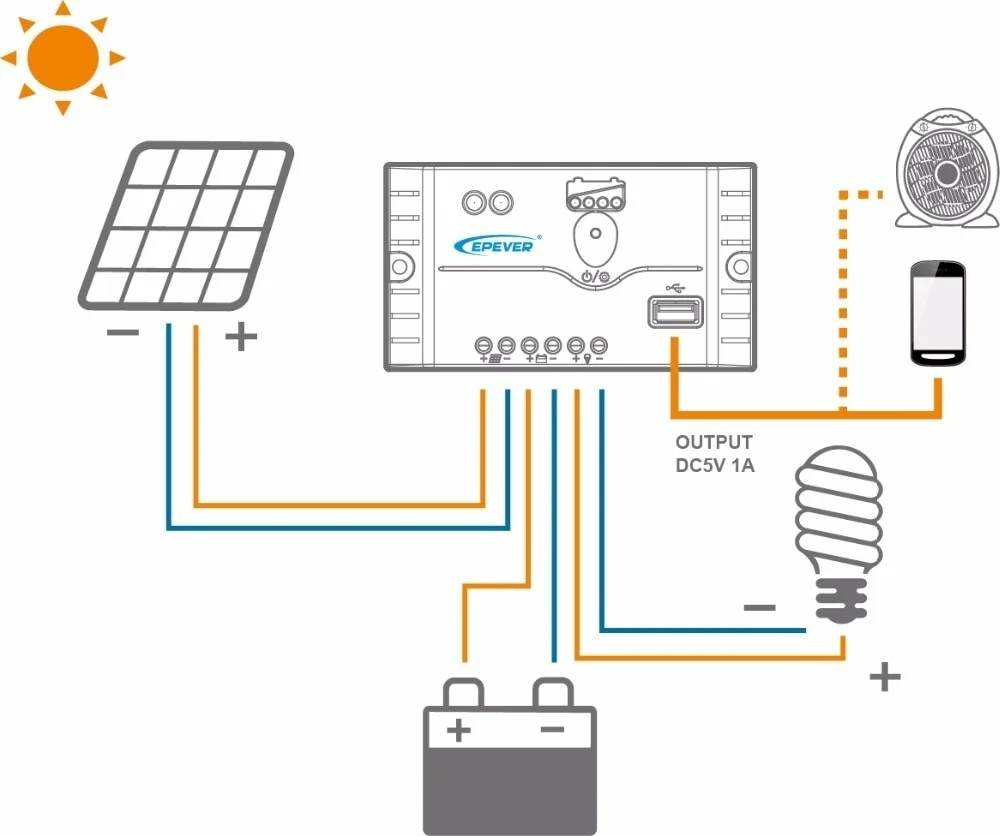 1. Подключите аккумулятор к регулятору заряда-плюс и минус.