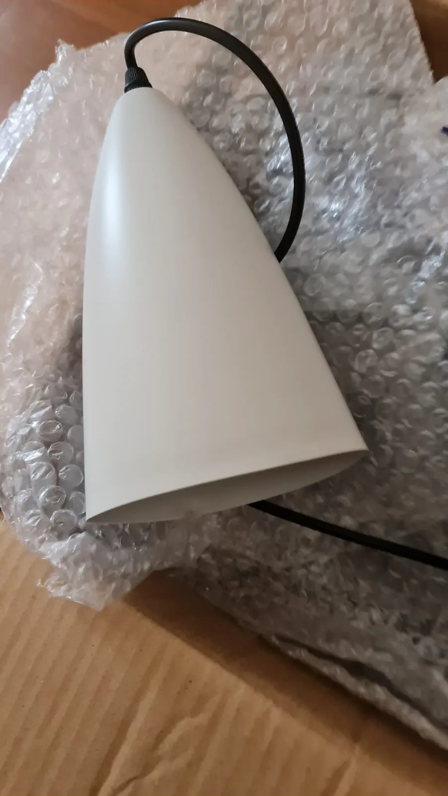 Доставка курьером меньше недели до Тюмени. Упаковка плохая, но все доехало целым. Светильник приятный на вид, и нет сомнений что рабочий. По сути, там только кабель и патрон.