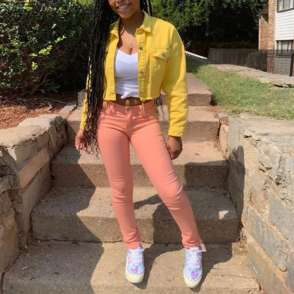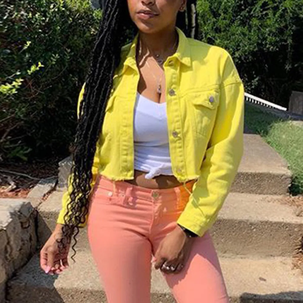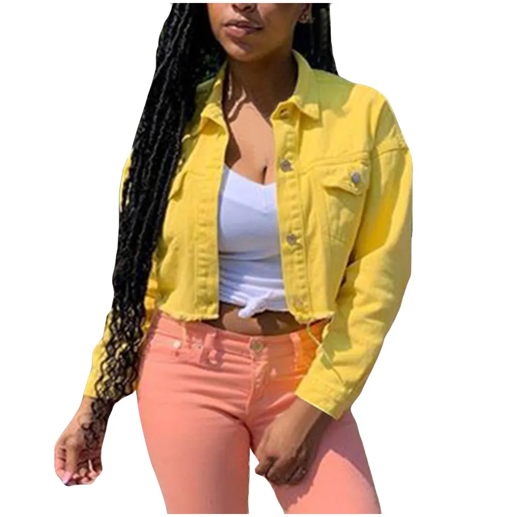 Джинсовая куртка и пальто для женщин 2020 Осенняя повседневная короткая приталенная джинсовая куртка ярких цветов Chaqueta Mujer Casaco Jaqueta Feminina