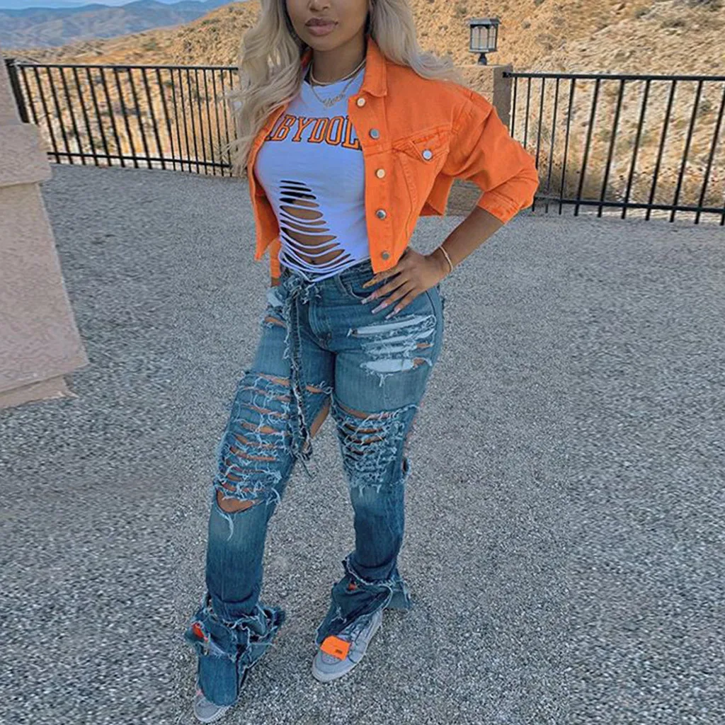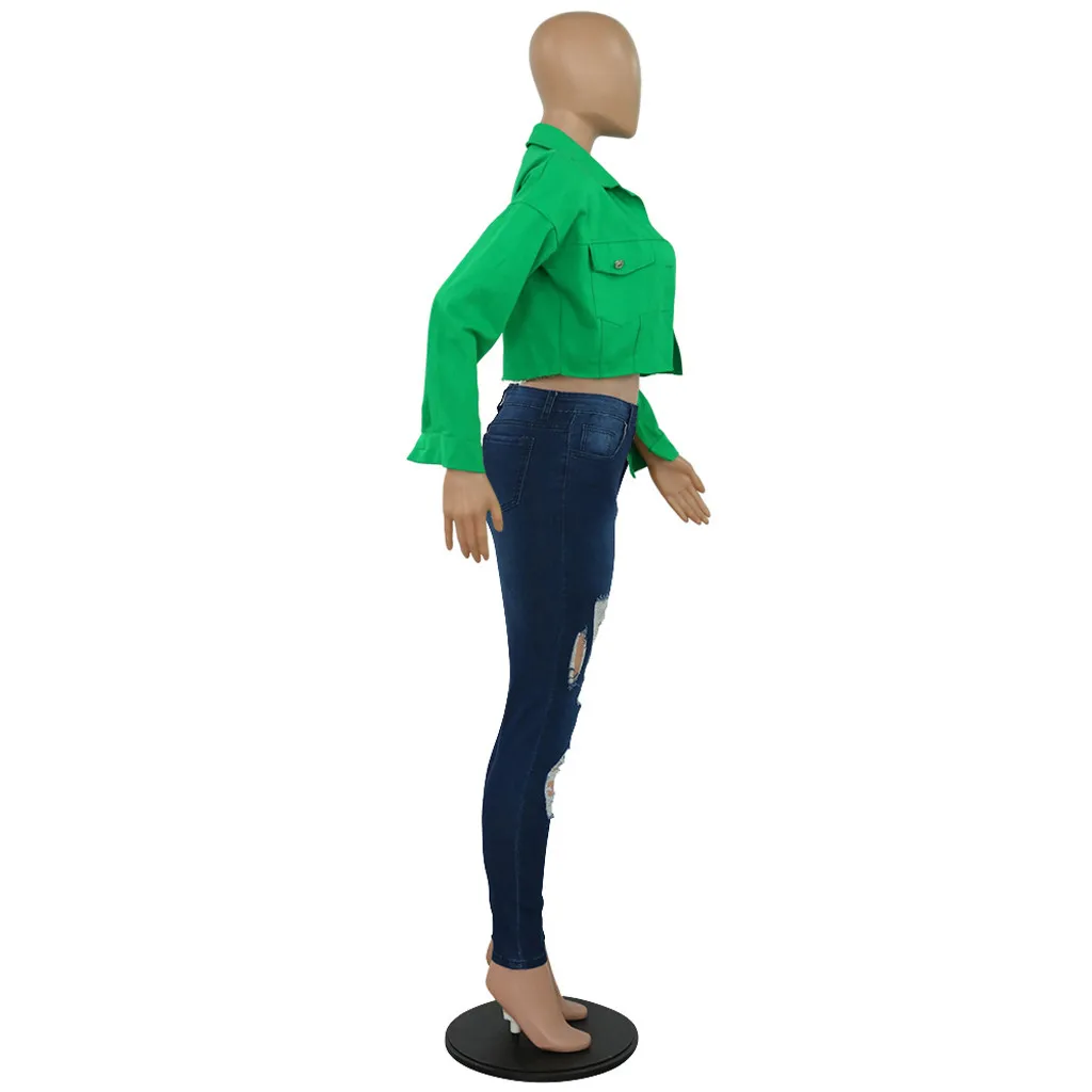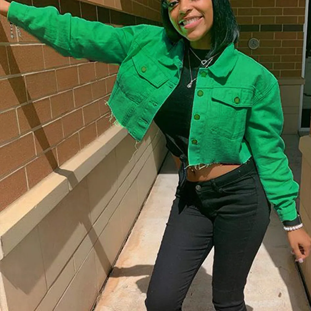Джинсовая куртка и пальто для женщин 2020 Осенняя повседневная короткая приталенная джинсовая куртка ярких цветов Chaqueta Mujer Casaco Jaqueta Feminina