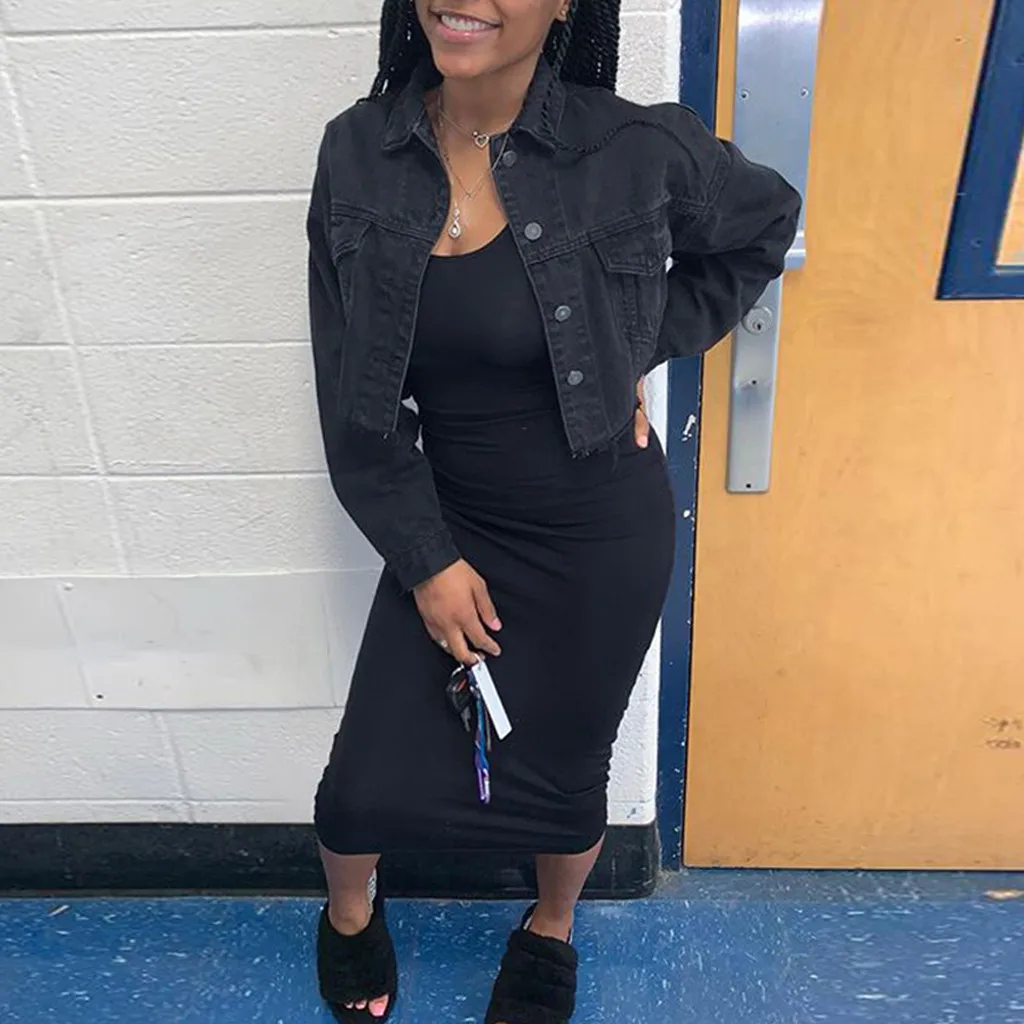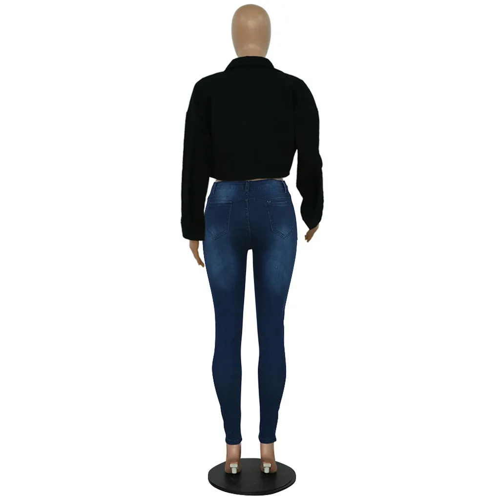 Модная женская тонкая джинсовая куртка с длинными рукавами и пуговицами