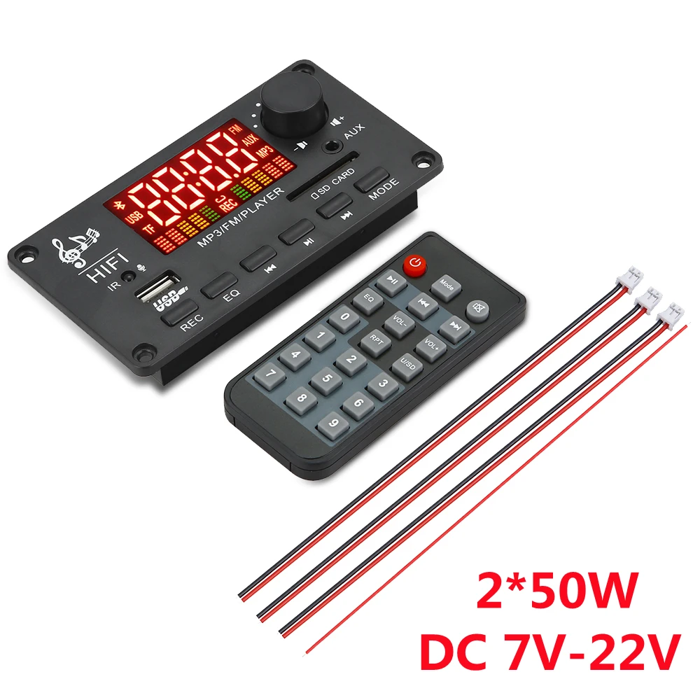 DC 5V 18V 50W усилитель MP3 декодер плата Bluetooth5.0 Автомобильный MP3 плеер USB записывающий модуль FM AUX радио для динамика громкой связи
