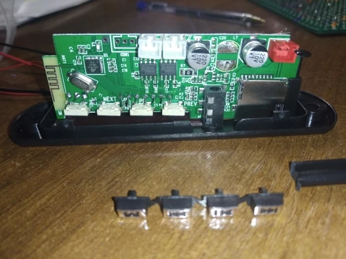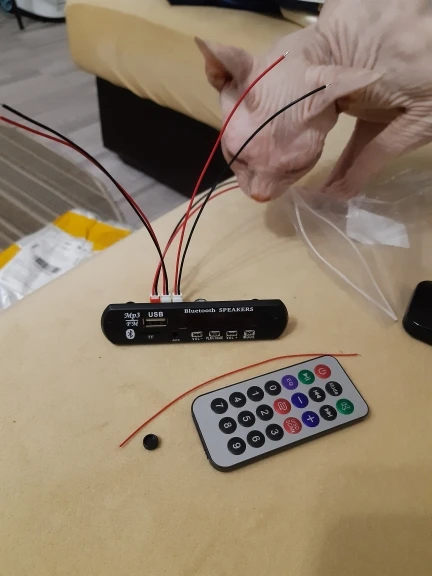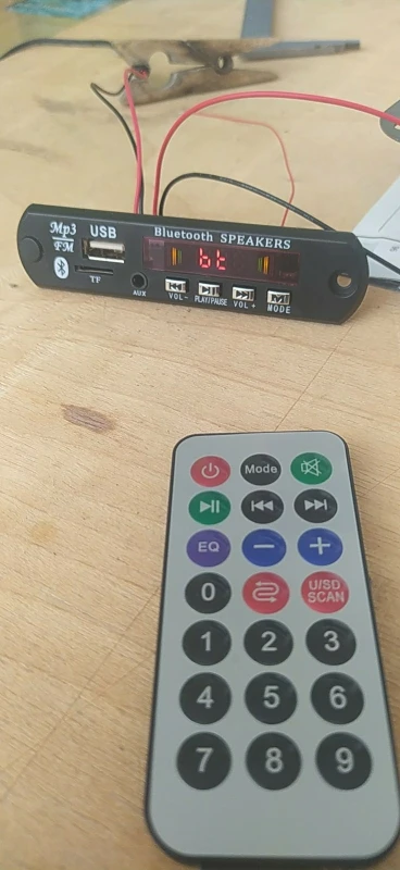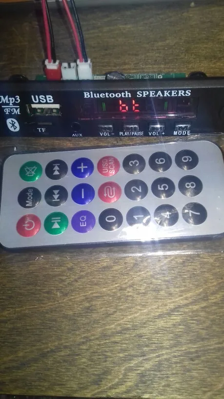 Классный плеер! Планирую заменить сгоревшую плату в подделке jbl-колонки. Особенности: при сбросе питания запоминает песню, но не позицию. При подключении Aux сам переключается на него. В пульте батарейка 2025, но подходит и 2032. Радио с памятью каналов. Как папки переключать пока не понял. По китайски не орёт, приятный "блюм" звук при подключении блютуз. Рекомендую!