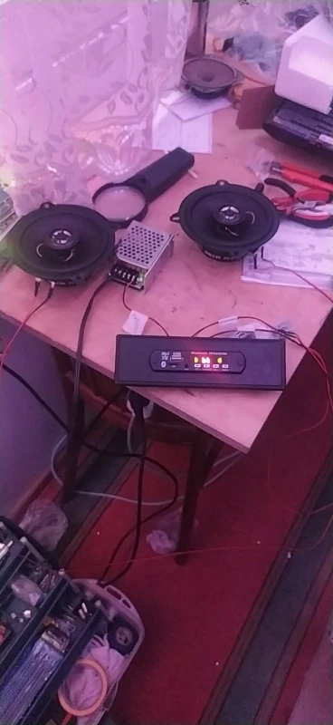 Доставка быстрая! Динамики из авто 13 см качают отлично, запитывал от 8 вольт- не хватает начинают заикаться, а вот от 14,5 играют на полную громкость. Пульт без батарейки, нужна 2032.Шумов нет.