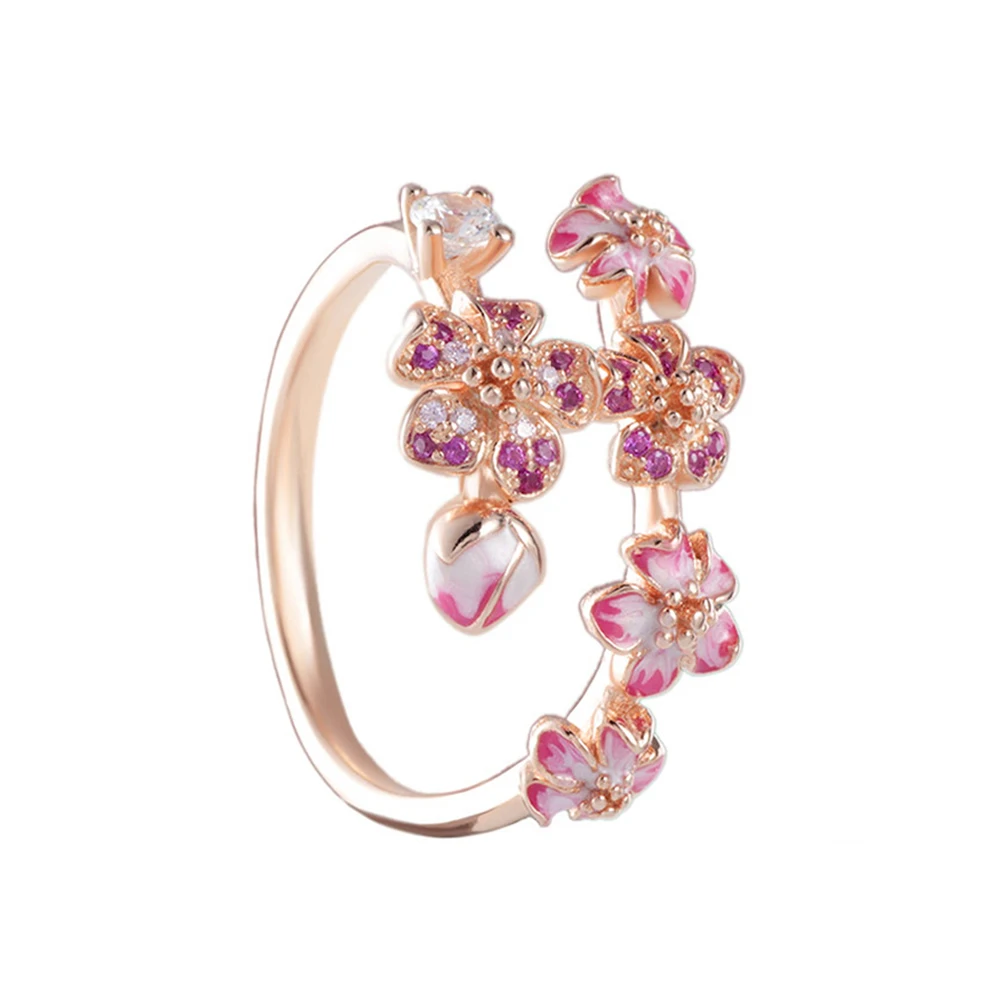 Женское кольцо из серебра 925 пробы, с цветком персика