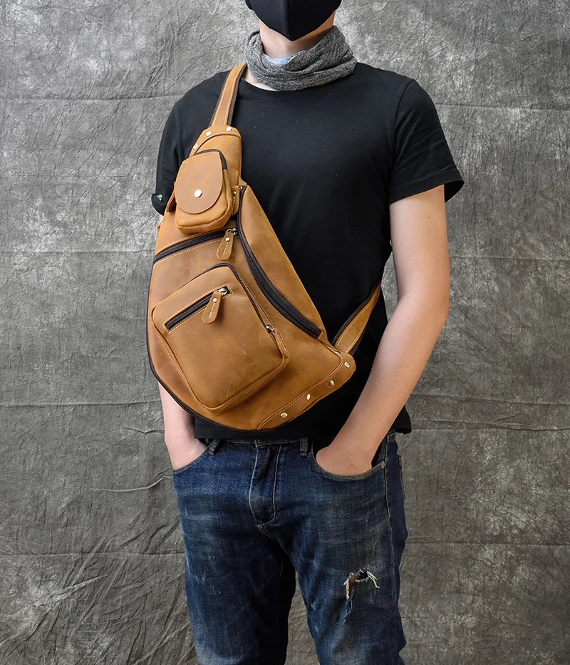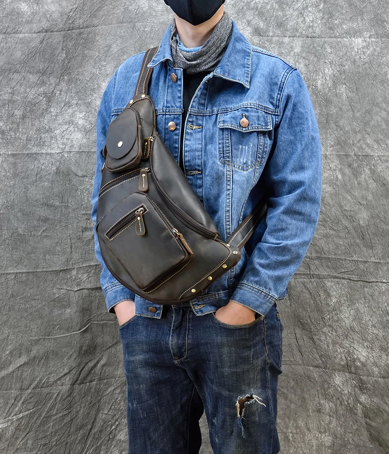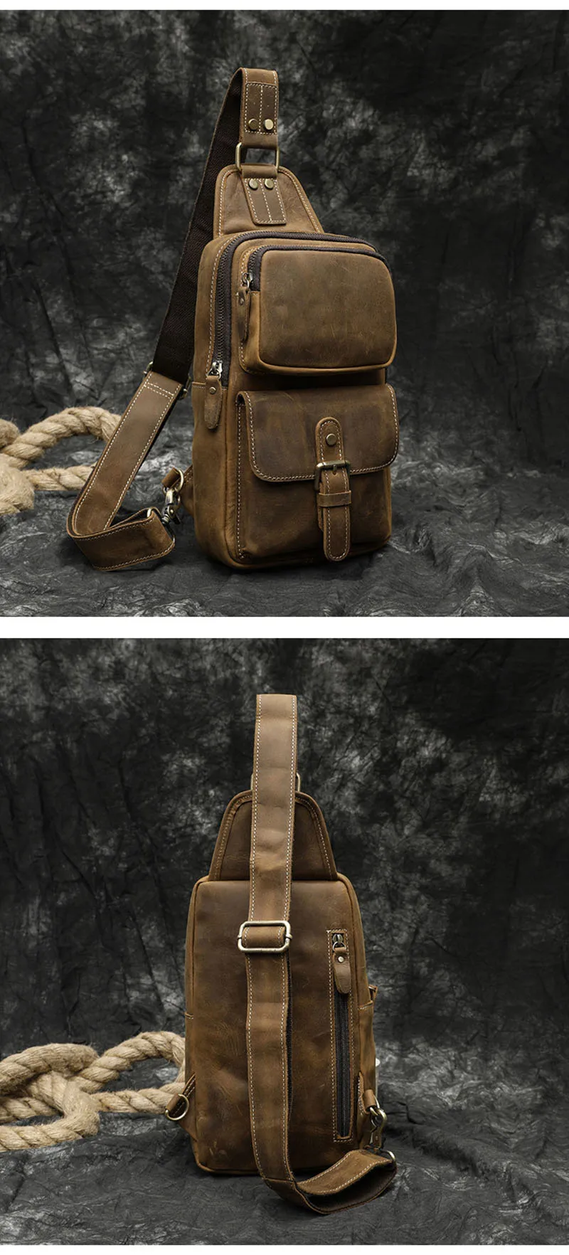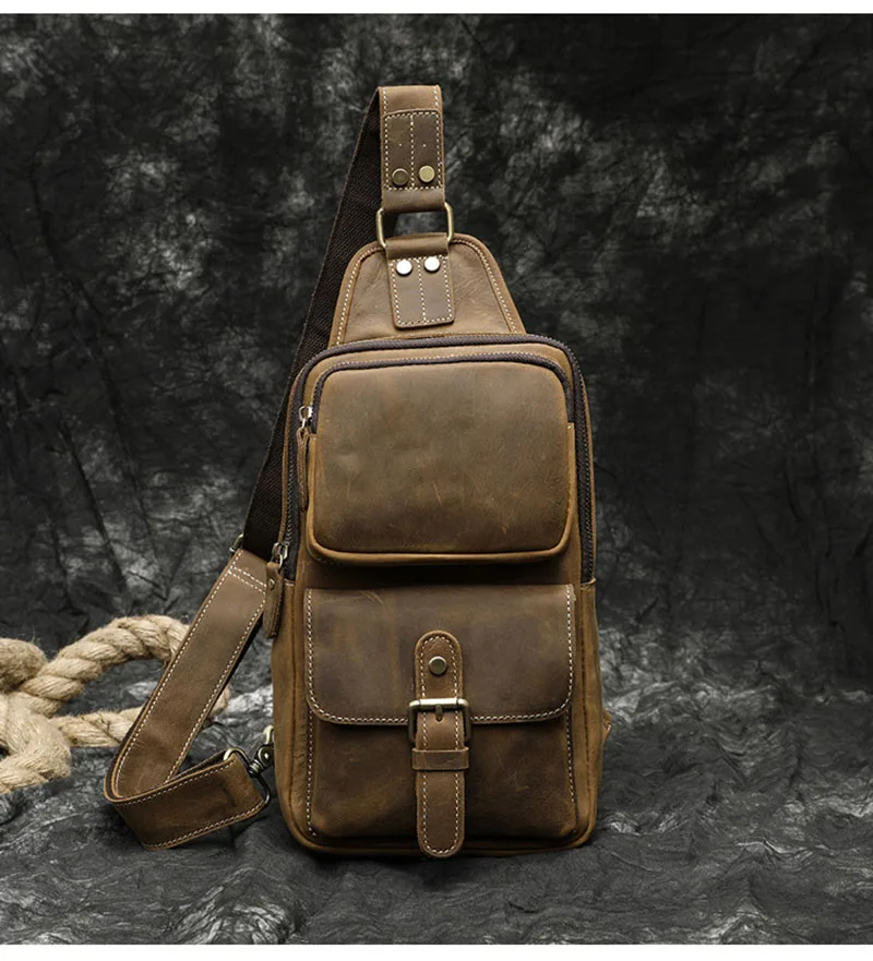 Мужская нагрудная сумка Luufan из натуральной кожи, черная коричневая сумка через плечо на лямках из мягкой коровьей кожи, дорожная сумка для верховой езды