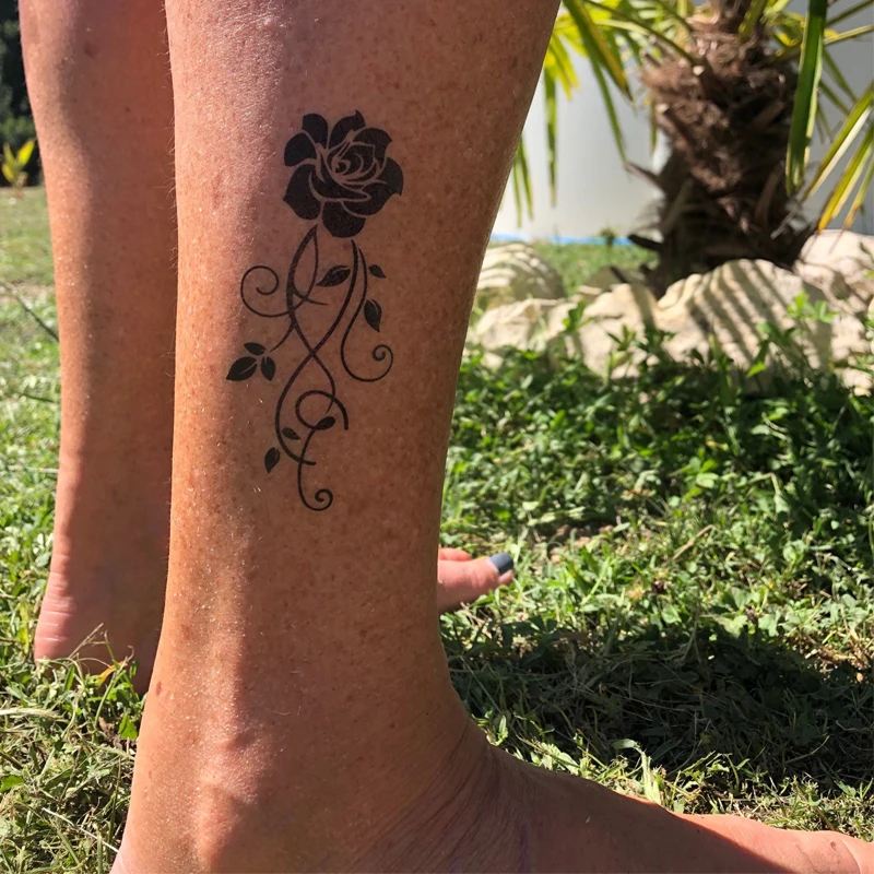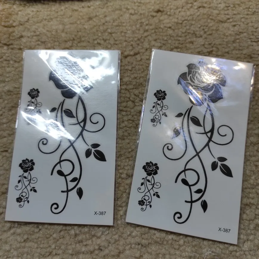 2 листа Водонепроницаемый Временные татуировки стикер цветок Роза флэш татуировки черный хна для Боди Арта рука поддельные татуировки для женщин и мужчин