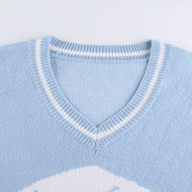 Женский Осенний пуловер Y2k, повседневный синий топ с принтом скеле...