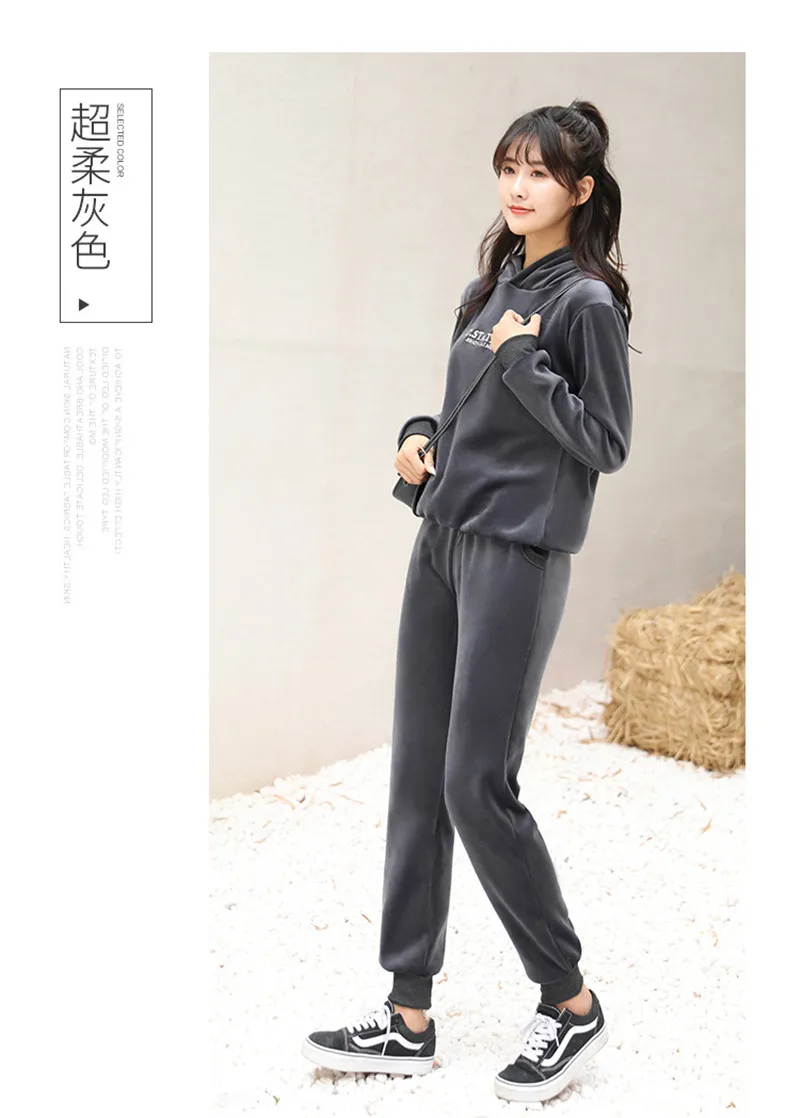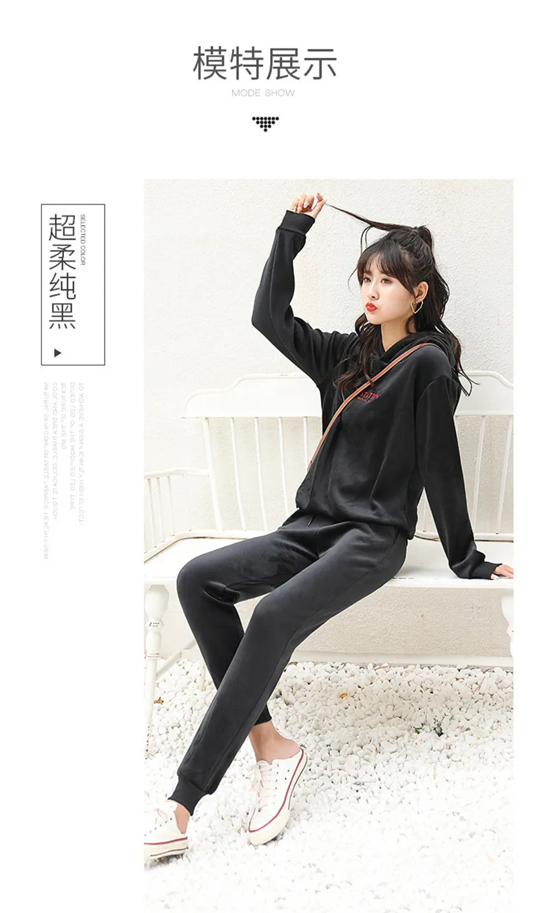 Женский бархатный теплый зимний домашний костюм Pliktea, черная серая Домашняя одежда, зимняя Домашняя одежда, зимние бархатные теплые брюки
