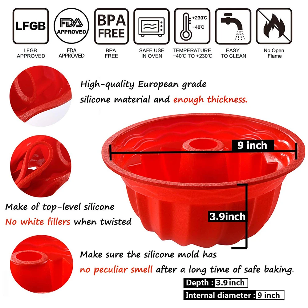 Форма для рифленой формы для торта безопасна для использования в духовке, микроволновой печи, морозильной камере и посудомоечной машине. Устойчивость к высоким температурам и замерзанию, безопасность от-40 ℃ до 230 ℃ (от-40 ℉ до 446 ℉)