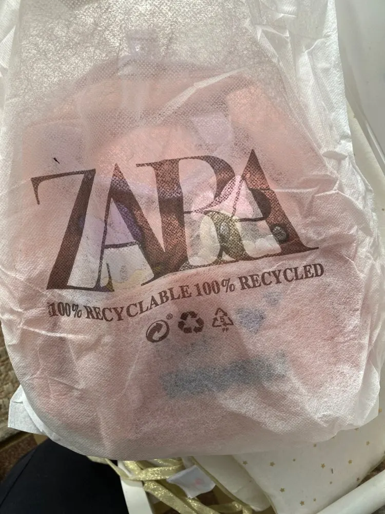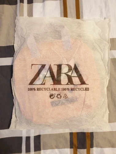 Прямо как на картинке. Это было медленно, чтобы прибыть. Это было очень хорошо упаковано. With zara fabric bag. И внутри у него есть этикетка Zara Baby. Как и оригинал. Хорошая покупка.