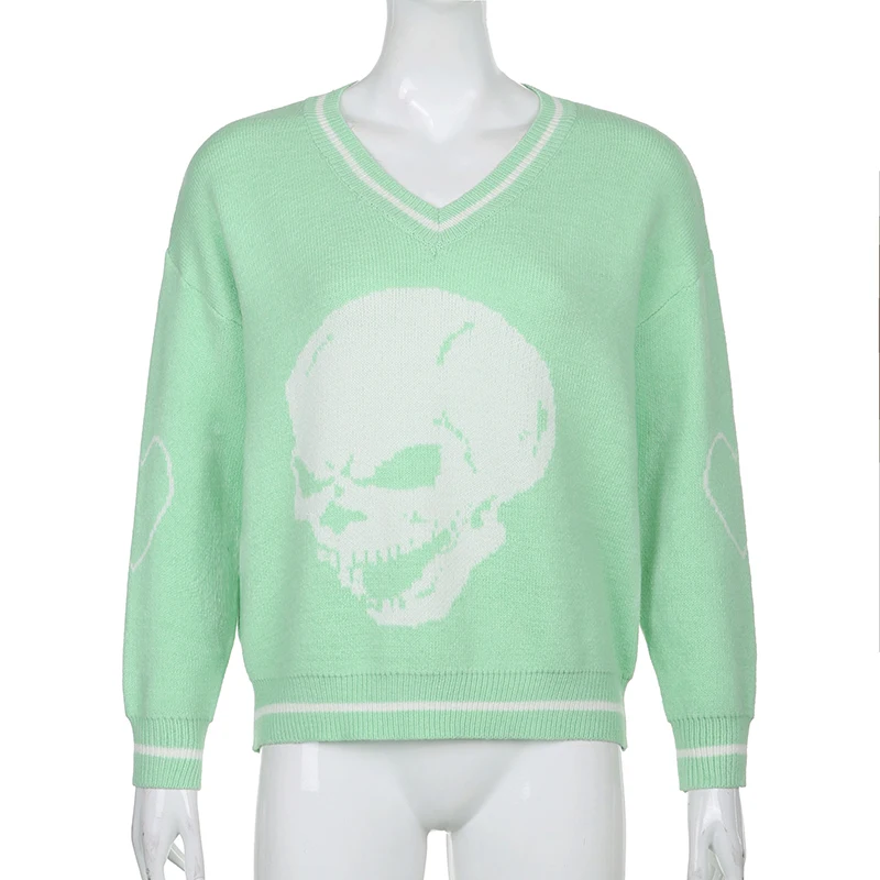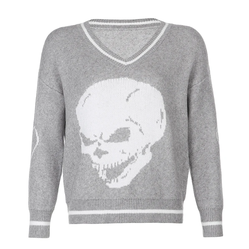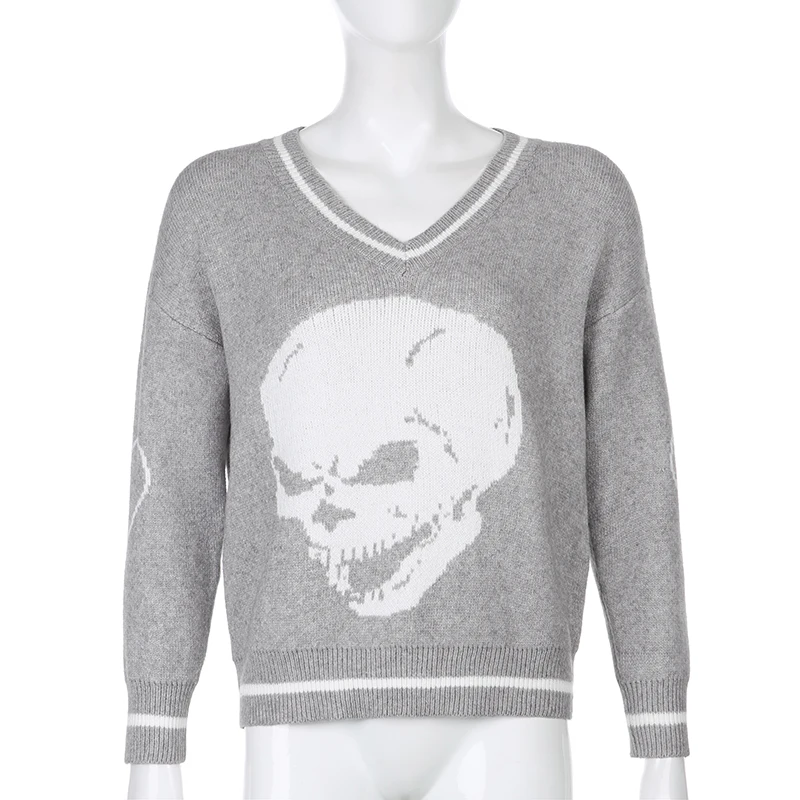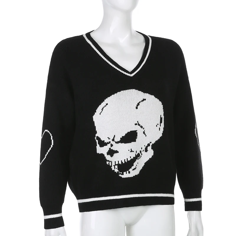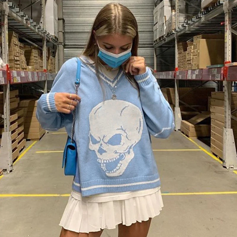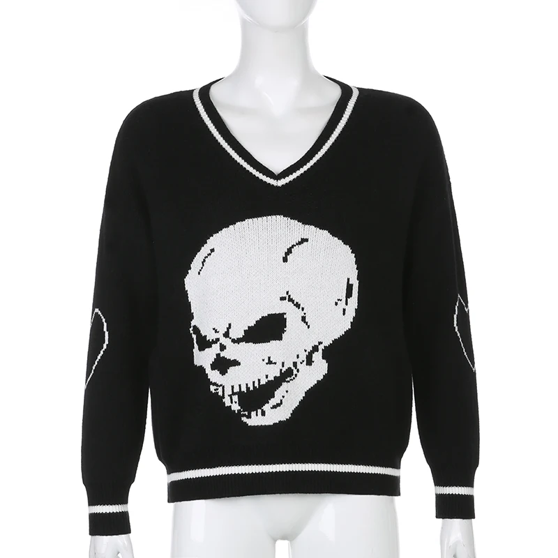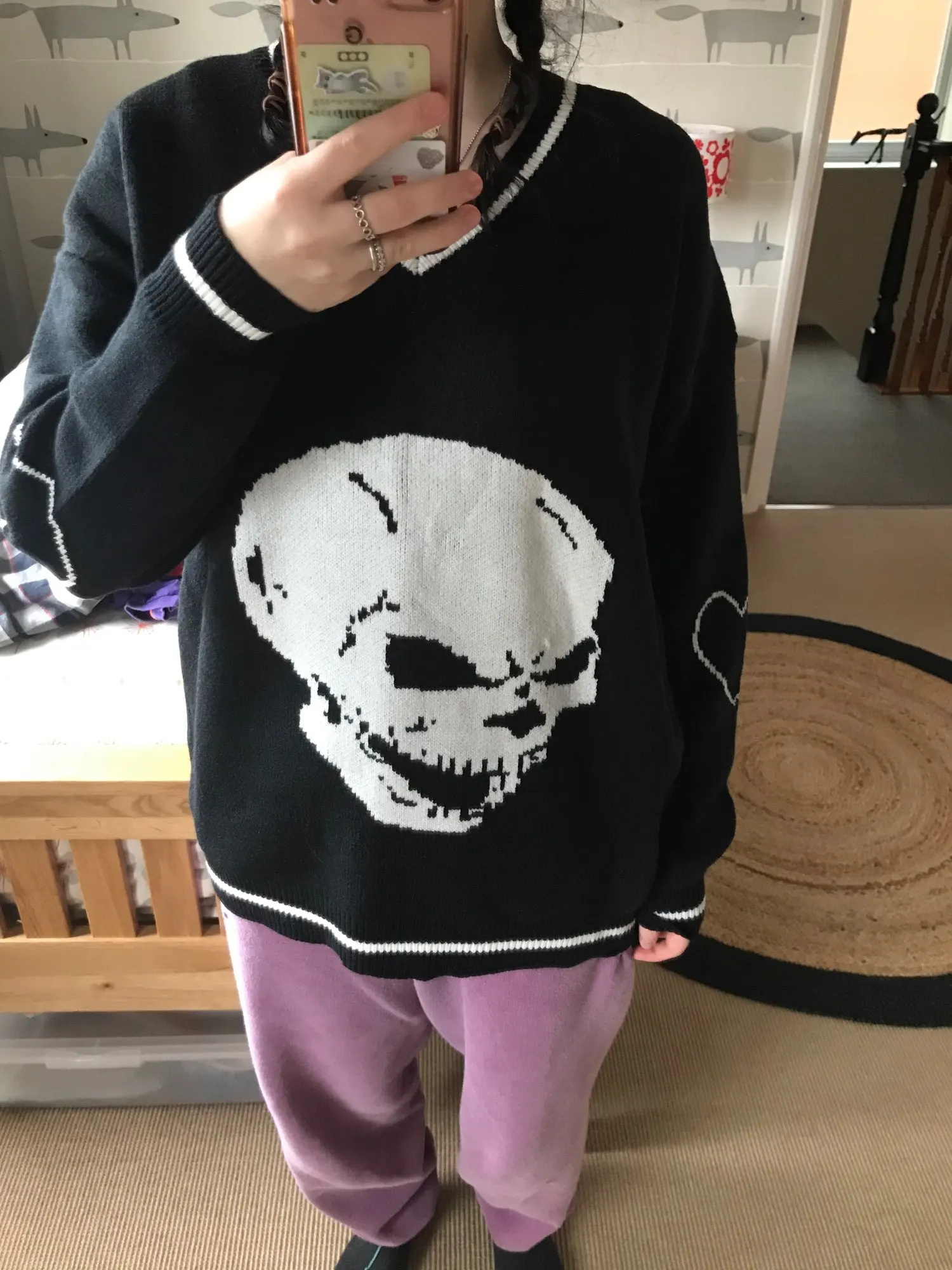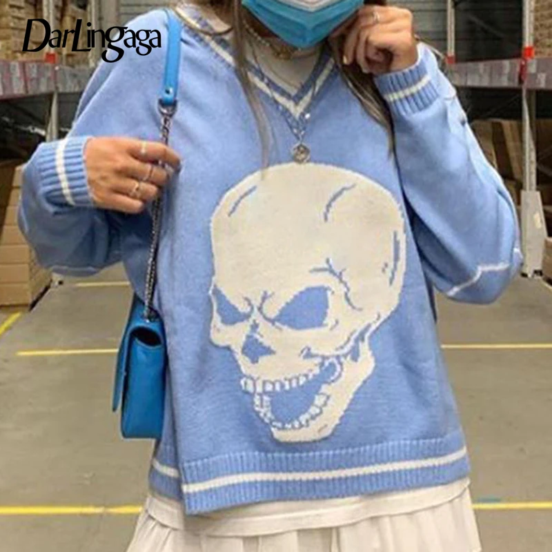 Женский осенне-зимний свитер Darlingaga, свободный трикотажный пуловер в стиле Харадзюку, с принтом черепа Y2K, трикотажный джемпер в Корейском стиле, 2020