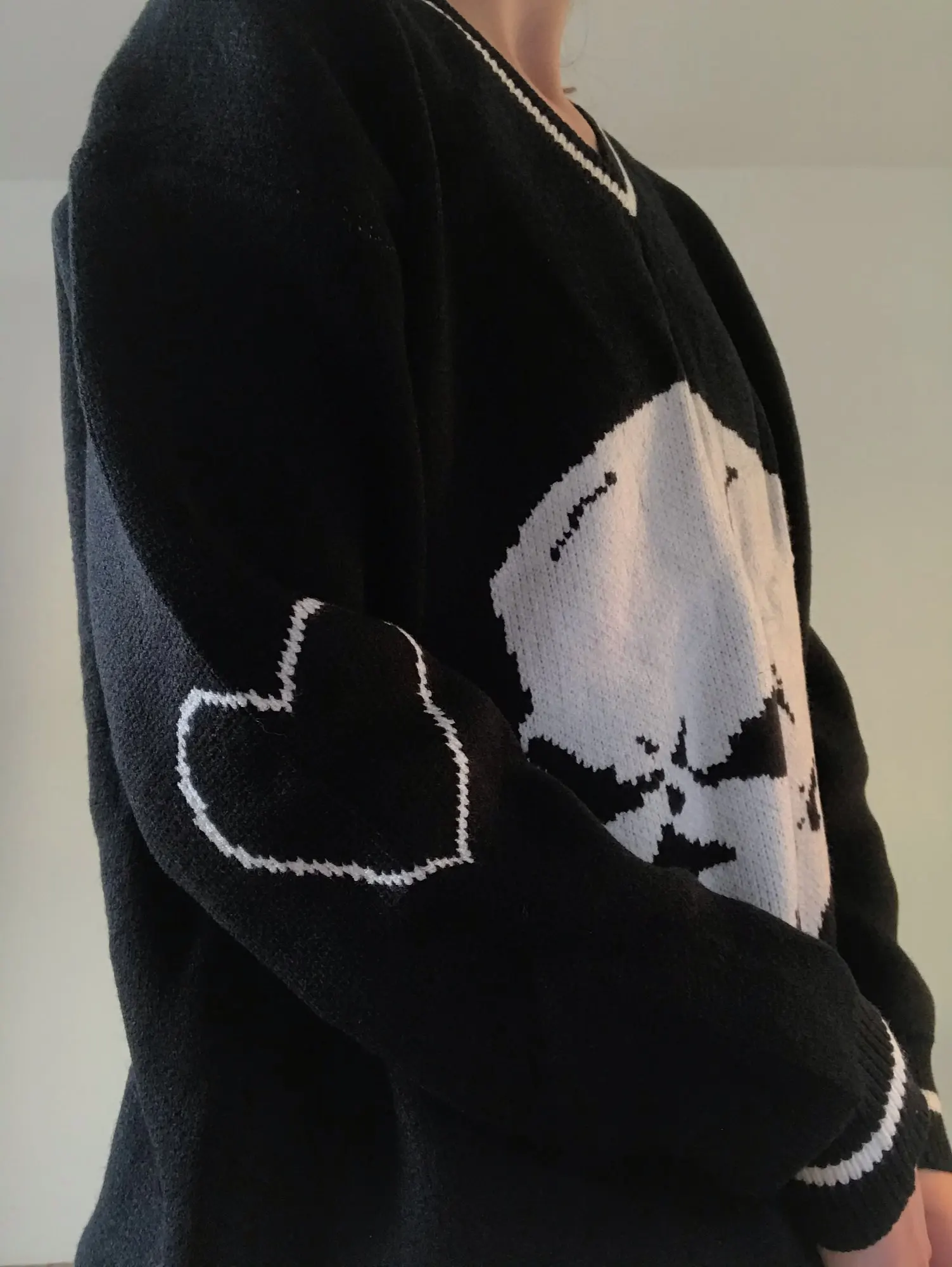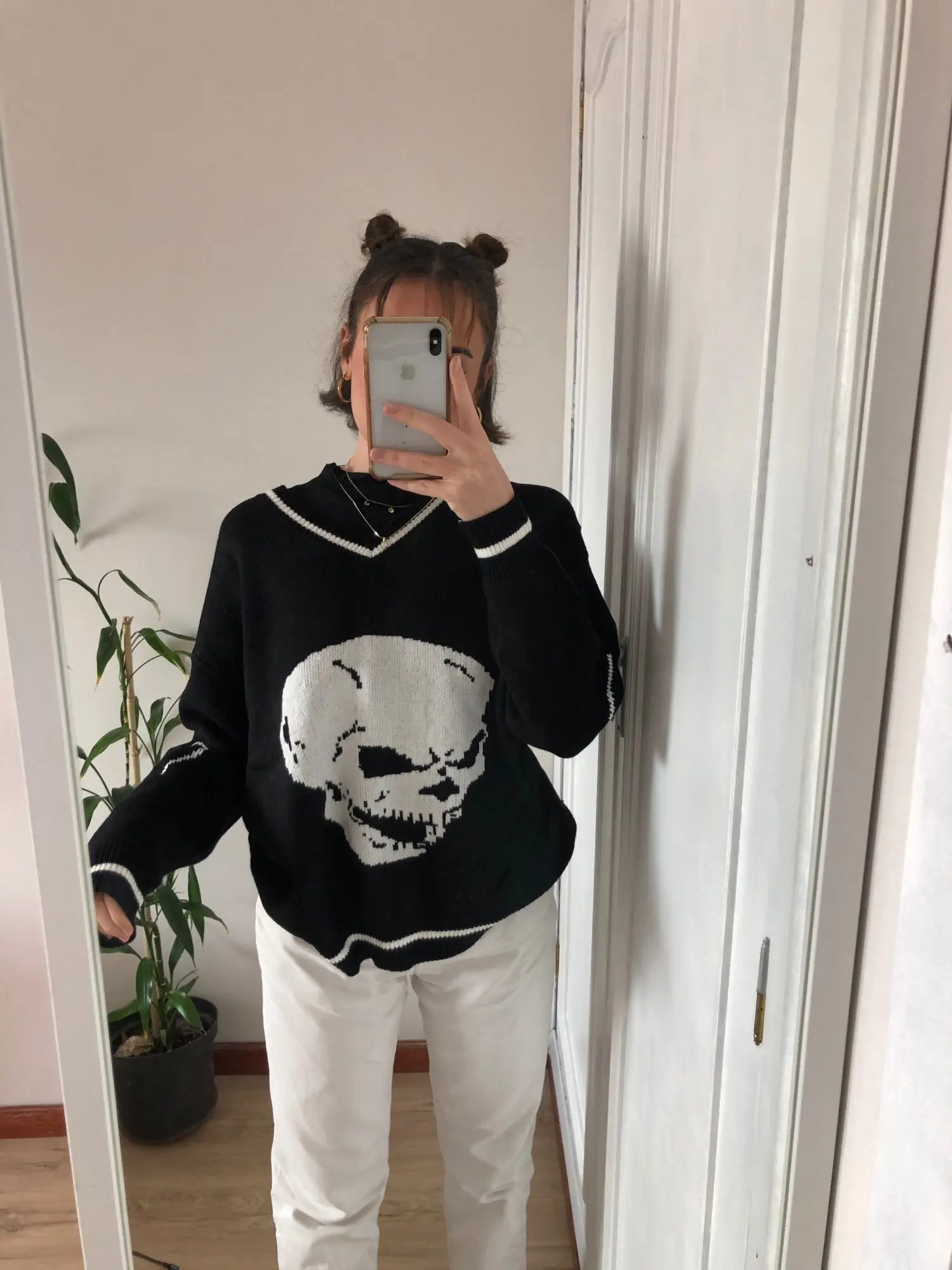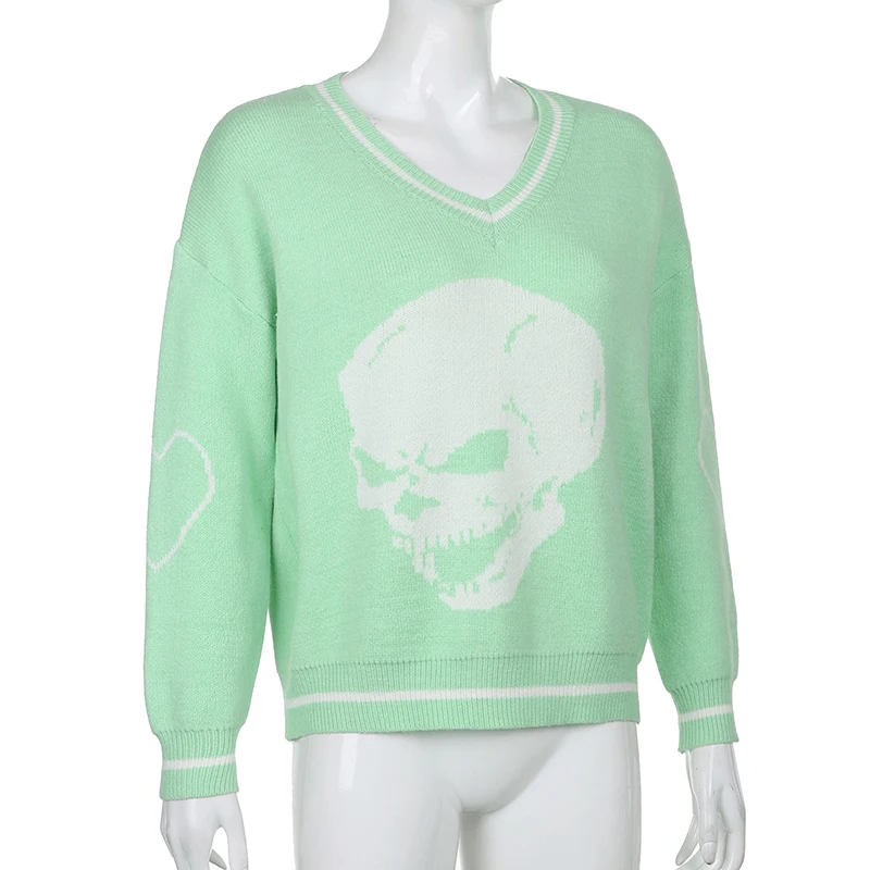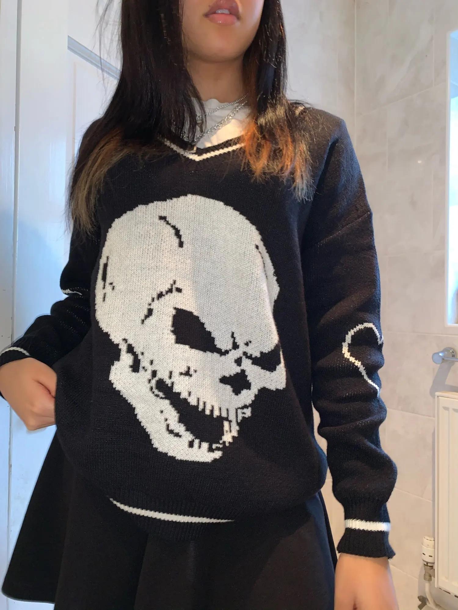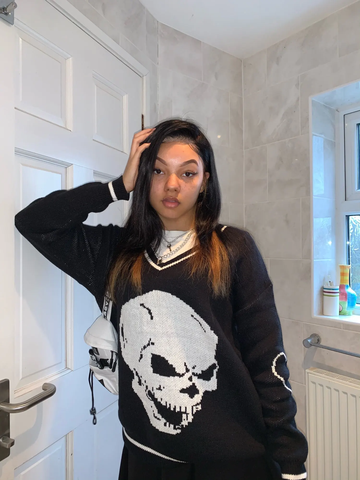 Женский осенне-зимний свитер Darlingaga, свободный трикотажный пуловер в стиле Харадзюку, с принтом черепа Y2K, трикотажный джемпер в Корейском стиле, 2020