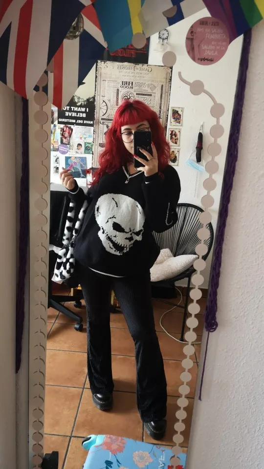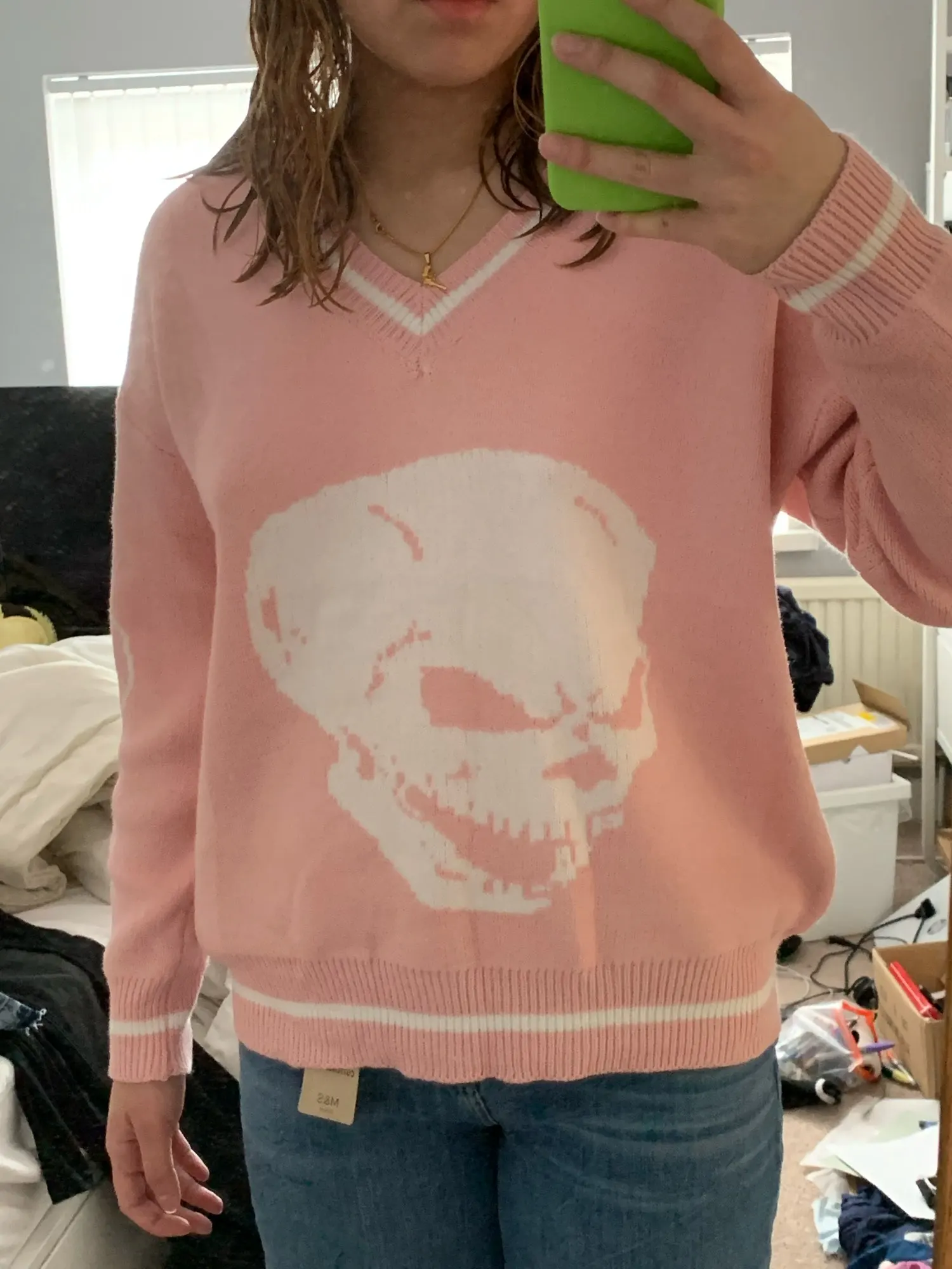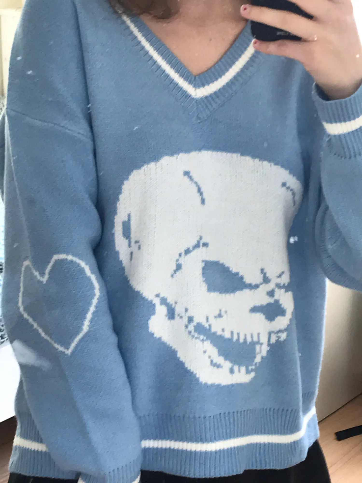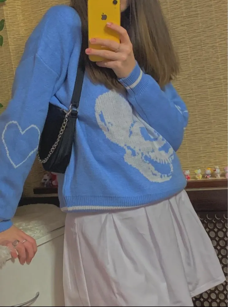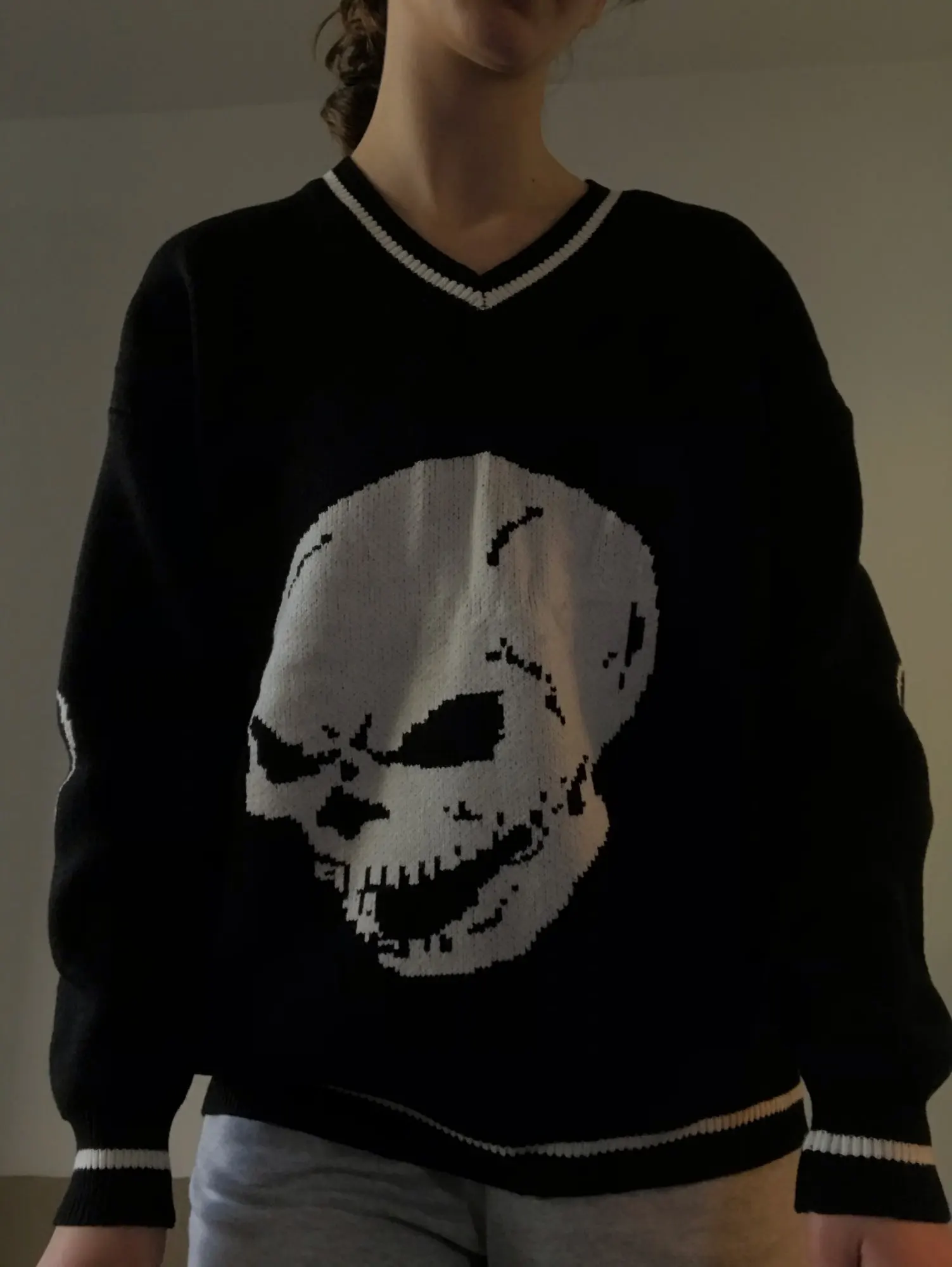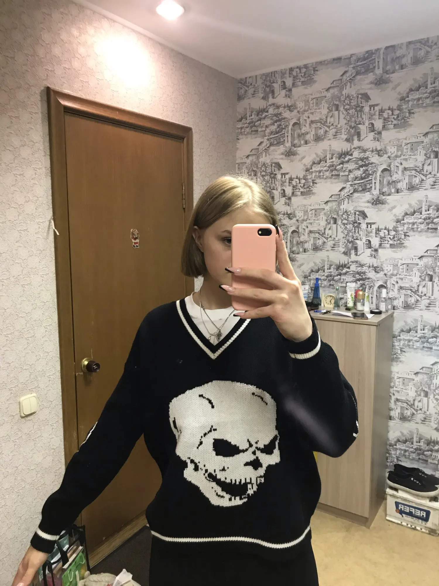 Женский осенне-зимний свитер Darlingaga, свободный трикотажный пуловер в стиле Харадзюку, с принтом черепа Y2K, трикотажный джемпер в Корейском стиле, 2020