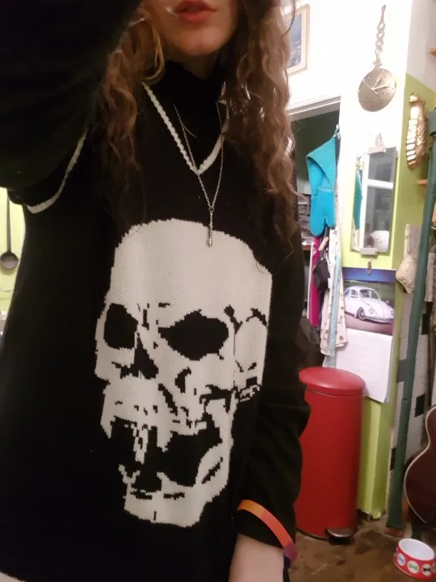 Этот свитер потрясающий! Очень мягкий и эластичный! Он выглядит как настоящая вещь на небесах, может подождать веб-сайт! Мастерство немного меньше того, что выглядит на картинке, но оно довольно точное. Для большого размера я заказал большой (я XS), и он подходит хорошо! Они садятся в сушилку :(