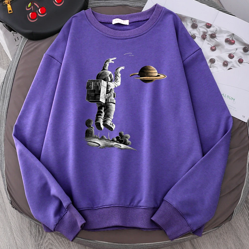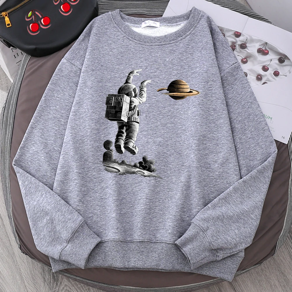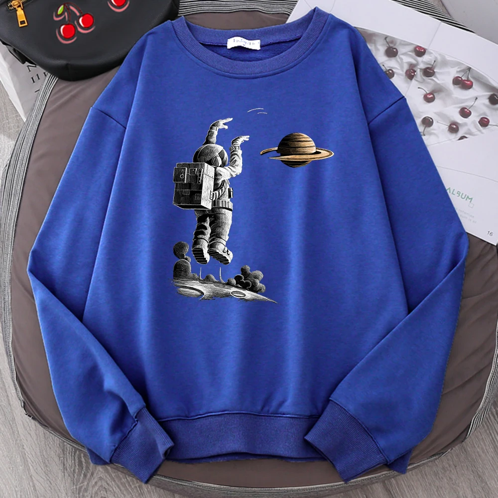 Свитшот мужской с круглым вырезом, корейский тренд с принтом астронавта, прыгает в Сатурн, винтажная одежда с капюшоном