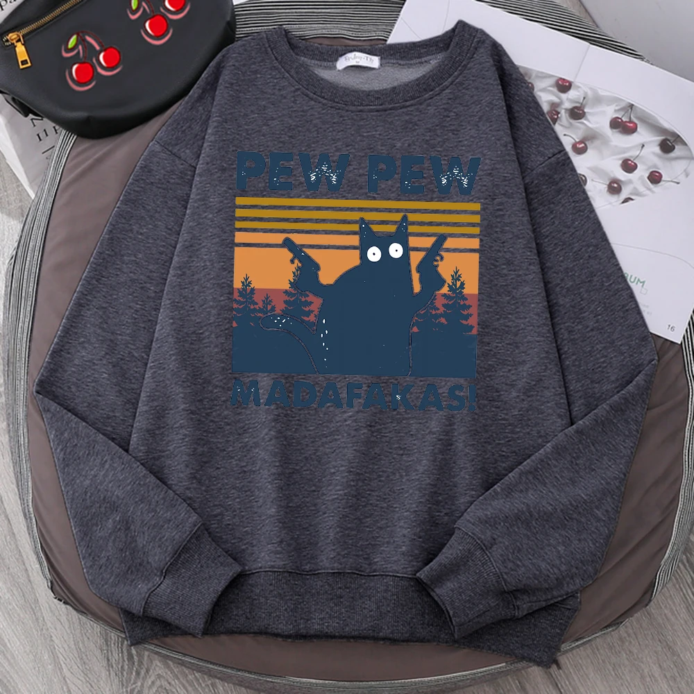 Черная кошка с ножом, толстовка с капюшоном, уличная мода, толстовк...