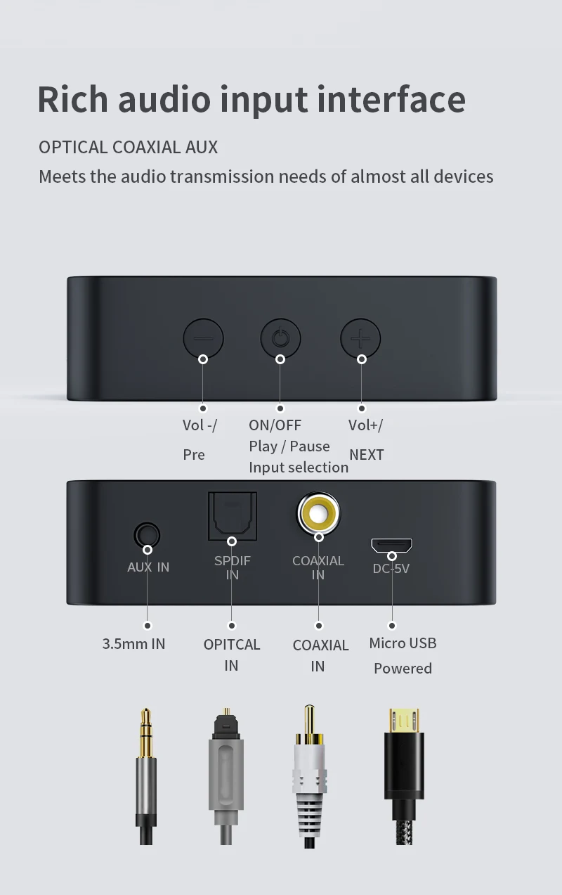 Features3Digital Optical Toslink SPDIF+Coaxial+3.5mm AUX Jack Three Connections