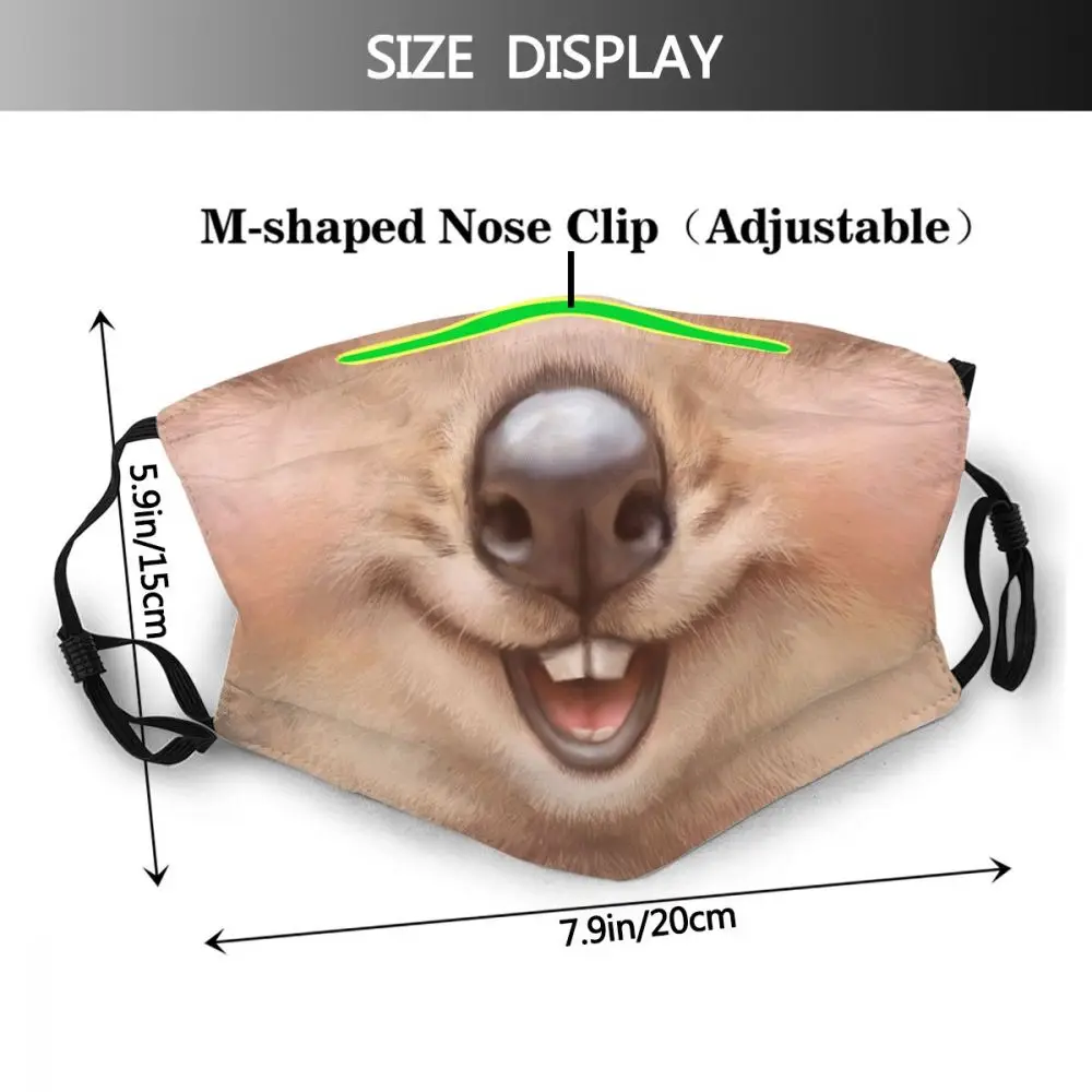 Забавные Quokka милые Животные улыбка Австралия подарок многоразовые лицевая маска против дымки пыле с фильтрами зимняя защита