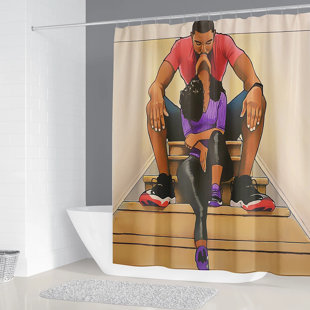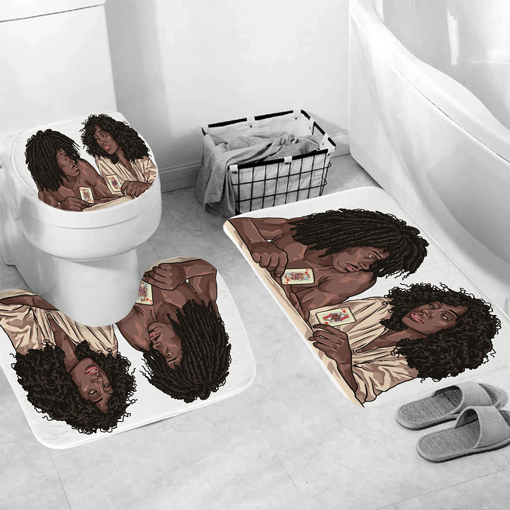 Влюбленная пара, африканская занавеска для душа, крышка для унитаза, набор ковриков для ванной, занавеска для влюбленных в афро, нескользящий коврик для ванной, домашний декор