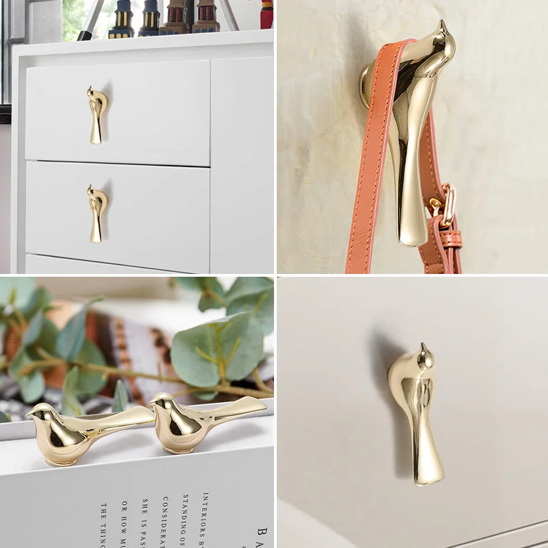Золотые ручки для шкафа с птицами, настенный крючок, винтажные ручки для ящиков с животными, для кухонных дверей, мебельные ручки, украшение