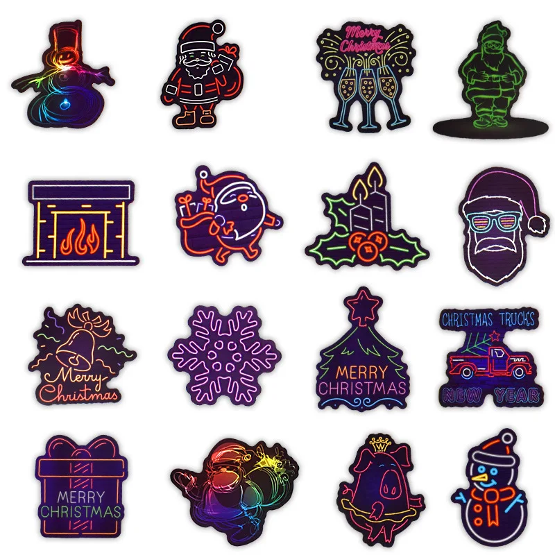 103050 шт. милый Рождественский Санта-Клаус неоновая световая накле...