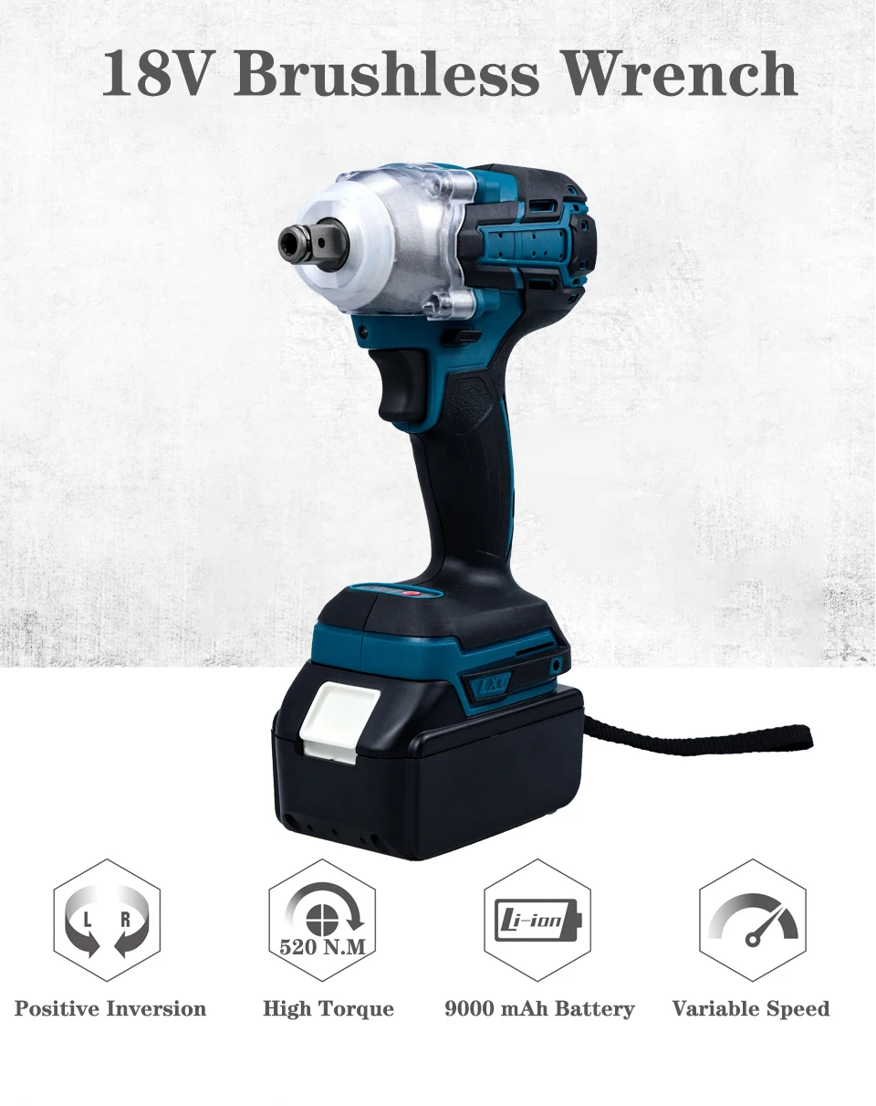 Беспроводной бесщеточный ударный гайковерт двойного назначения электрический шуруповерт Электроинструмент адаптирован к батарее Makita 18 в