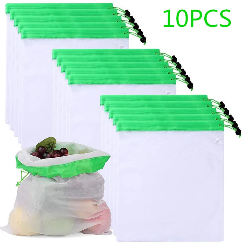 10 упаковок многоразовых сетчатых пакетов для продуктов, моющиеся, экологически чистые, легкие пакеты для продуктов, покупок, хранения фруктов, средства для красоты и здоровья