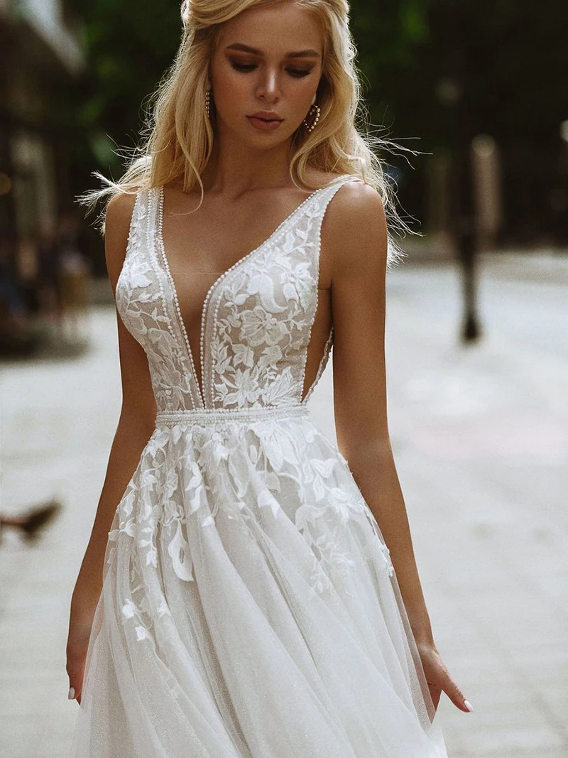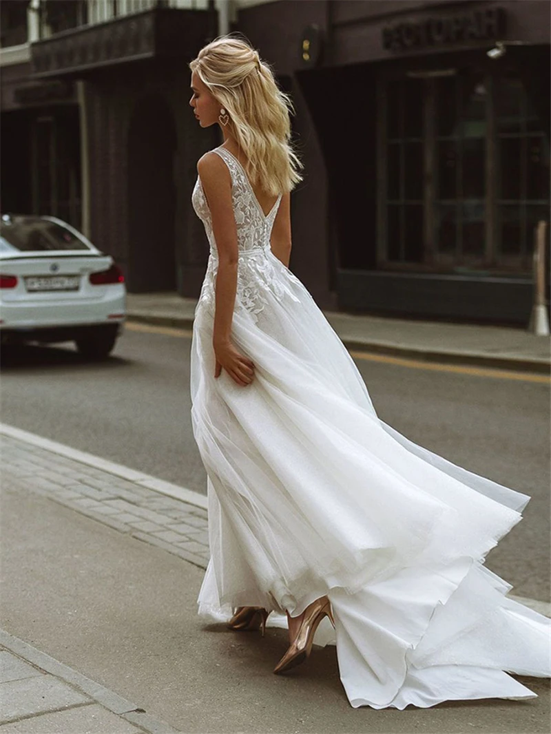Свадебные платья LORIE Dream для невесты с кружевной аппликацией, пляжные свадебные платья принцессы 2020, элегантное платье Бохо С V-образным вырезом и открытой спиной
