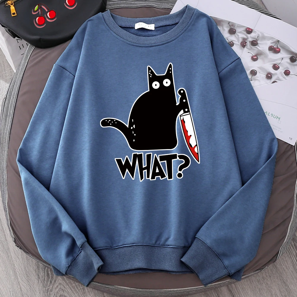 Толстовки с маленьким черным котом и ножом, свитшот с забавным принтом букв, модная мужская толстовка в стиле Харадзюку, повседневный мужской спортивный костюм из флиса