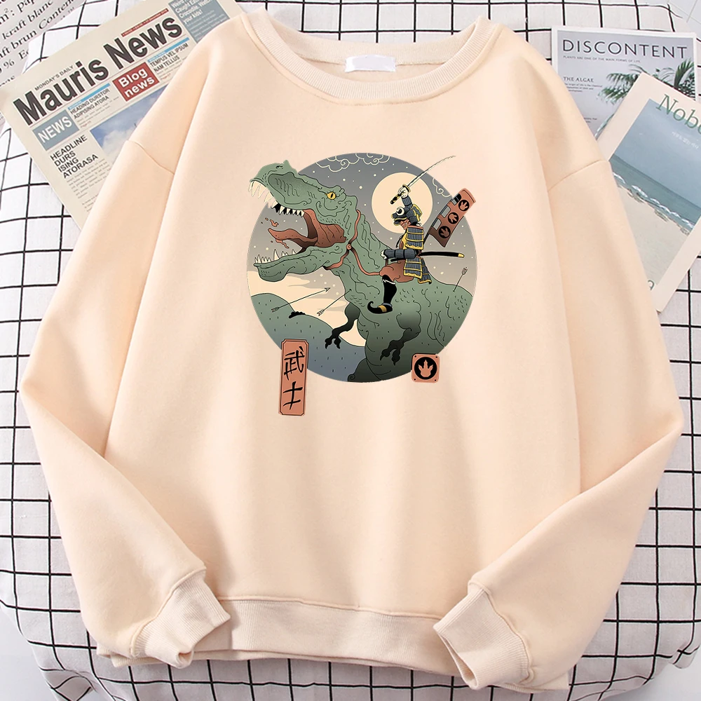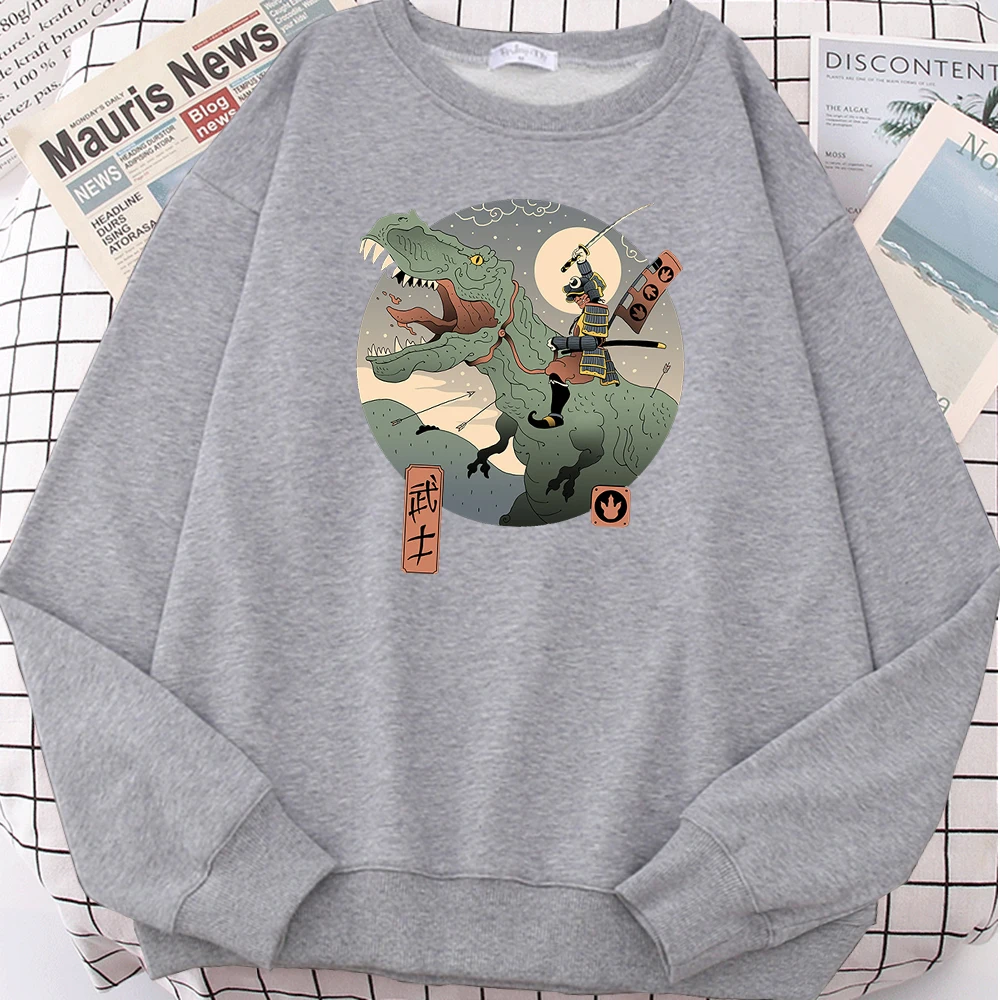 Свитшот укийое мужской с принтом самурая и динозавра, уличный дизайнерский худи, худи в стиле Харадзюку, спортивный костюм оверсайз, на осень