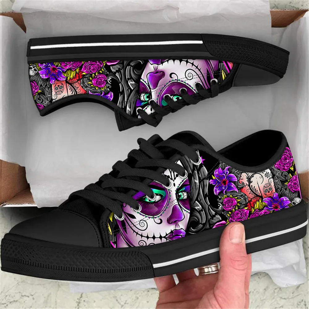 ELVISWORDSкрутые женские кроссовки, меняющие цвет, с черепом, цветочным узором, в готическом стиле; Повседневная Вулканизированная обувь для девочек; Парусиновая обувь с низким верхом