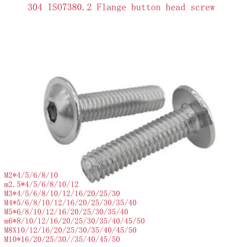 5-50 шт., m2 m2, 5 M3 M4 M5 M6 m8 m10, Шестигранник из нержавеющей стали 304, круглая кнопка, фланцевая головка с шайбой, винтовой болт