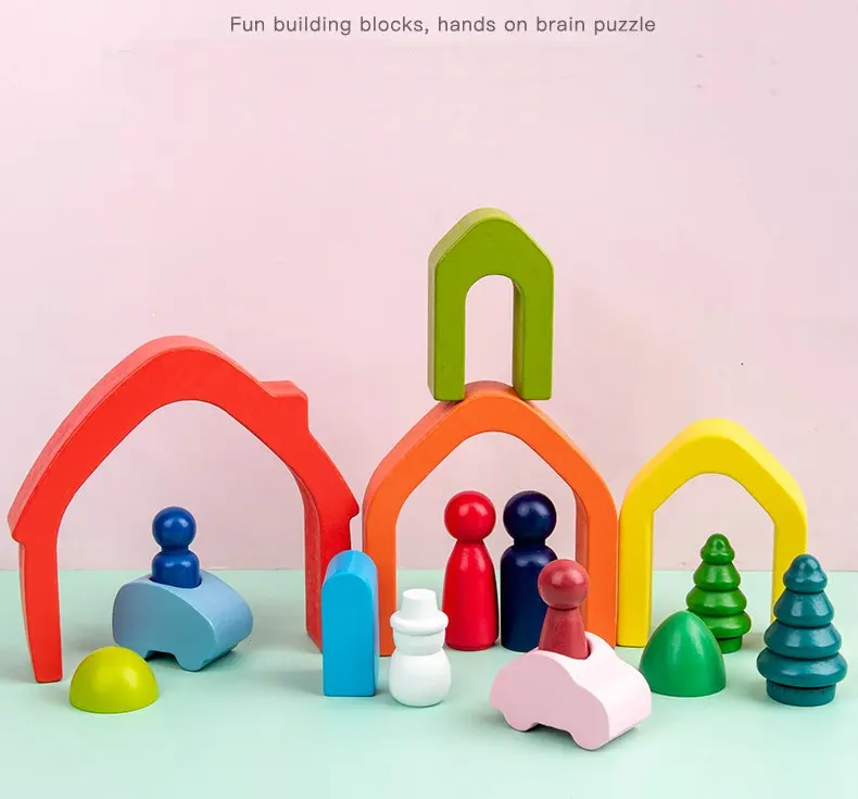Деревянный строительный конструктор Монтессори, Радужный дом, набор...