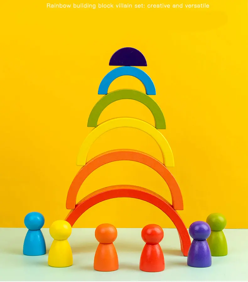 Деревянные радужные строительные блоки Монтессори, набор злодей, де...