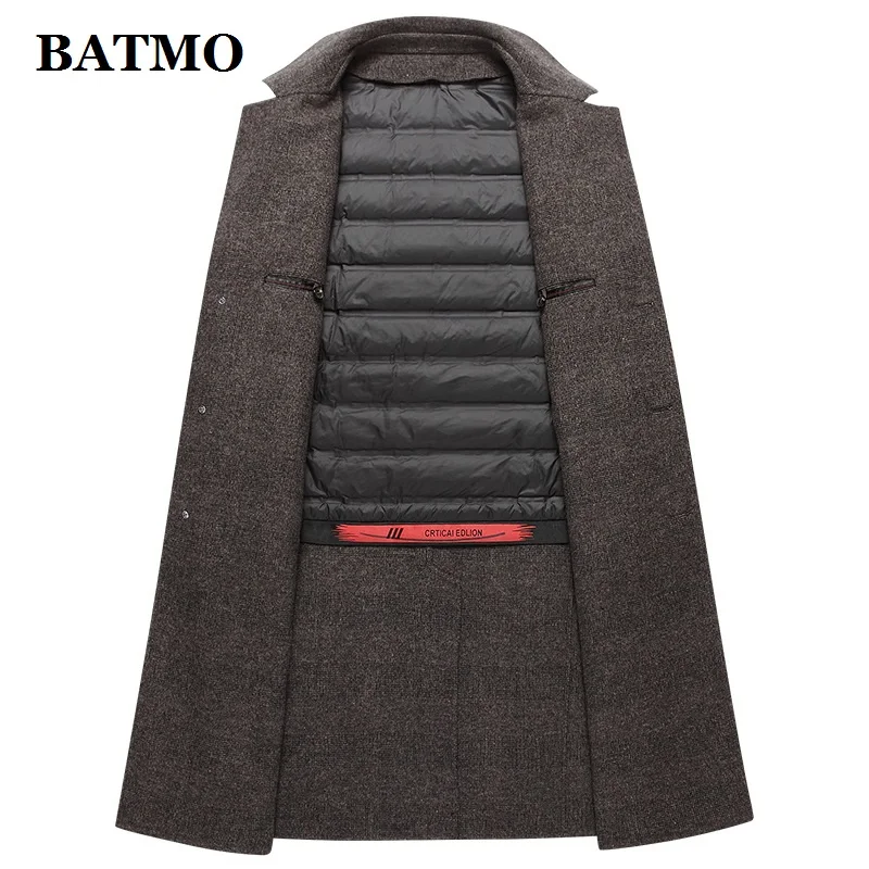 BATMO 2020 Новое поступление, осенне-зимняя куртка с белым утиным пухом, с подкладкой шерстяное длинное пальто плащ-Тренч пальто для мужчин, мужские пальто, шерстяная куртка, 9617