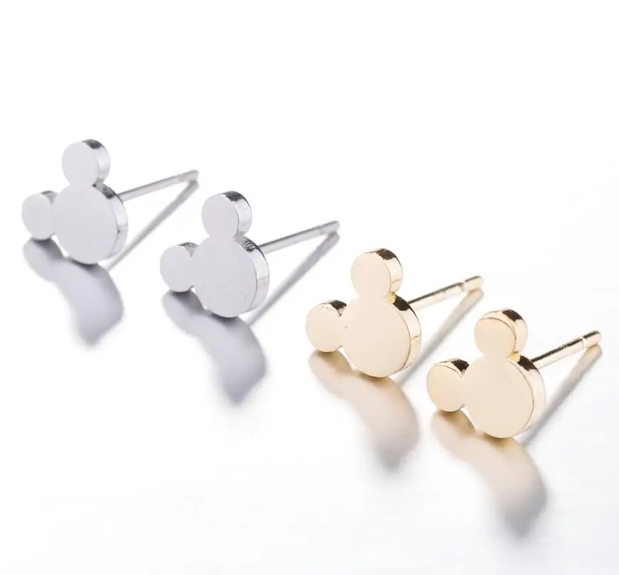Серьги-гвоздики женские из нержавеющей стали, с изображением мыши, дерева, молнии, Яго, велосипеда, русалки, круглые