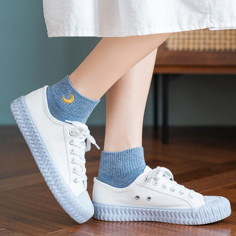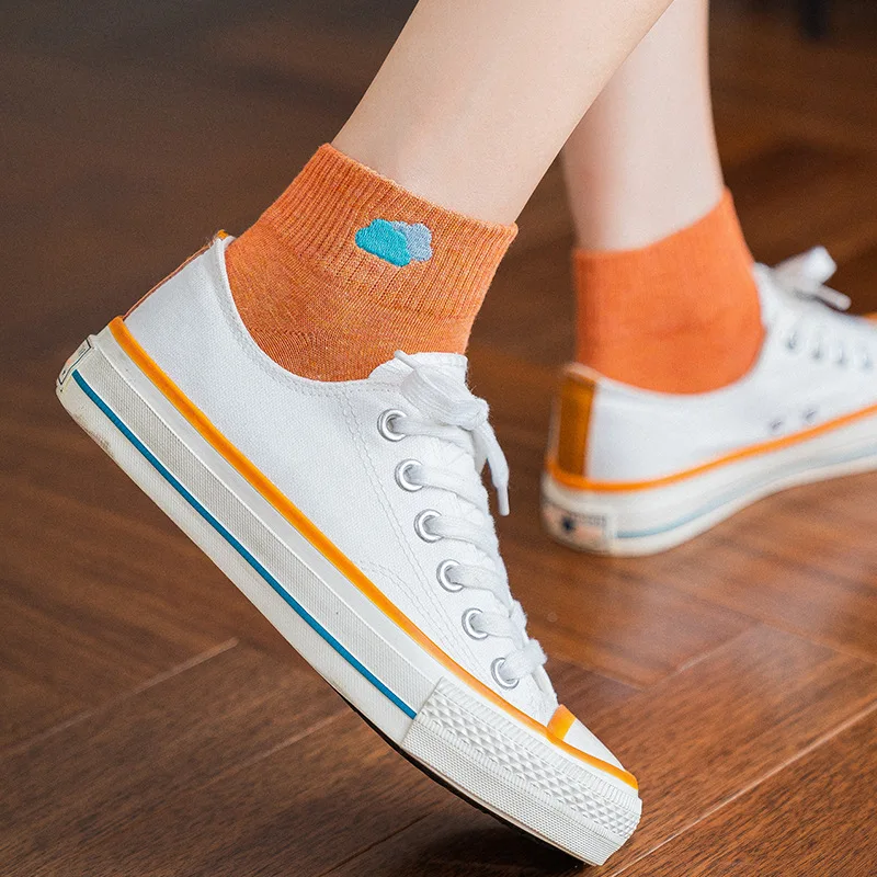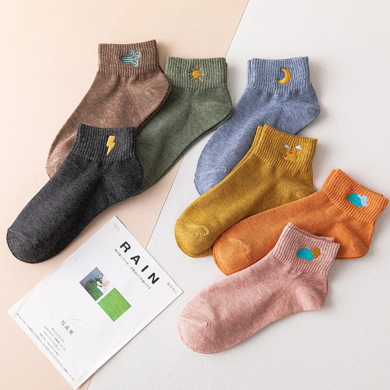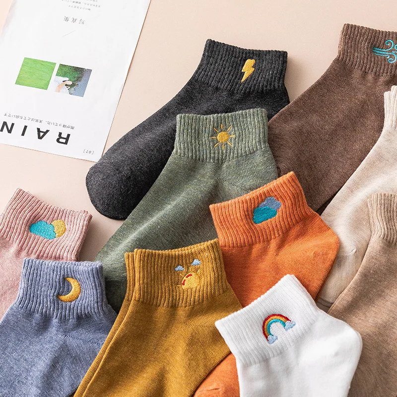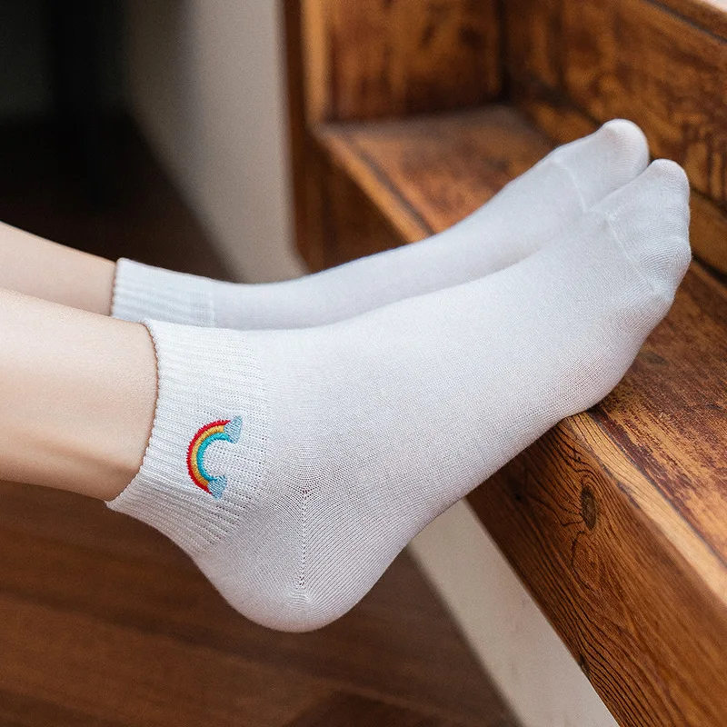 Новые женские повседневные хлопковые носки для малышей; Модные прогноз вышивка колледжа милые носки до лодыжки 1 пара Защита от солнца Радуга молнии со снежинками