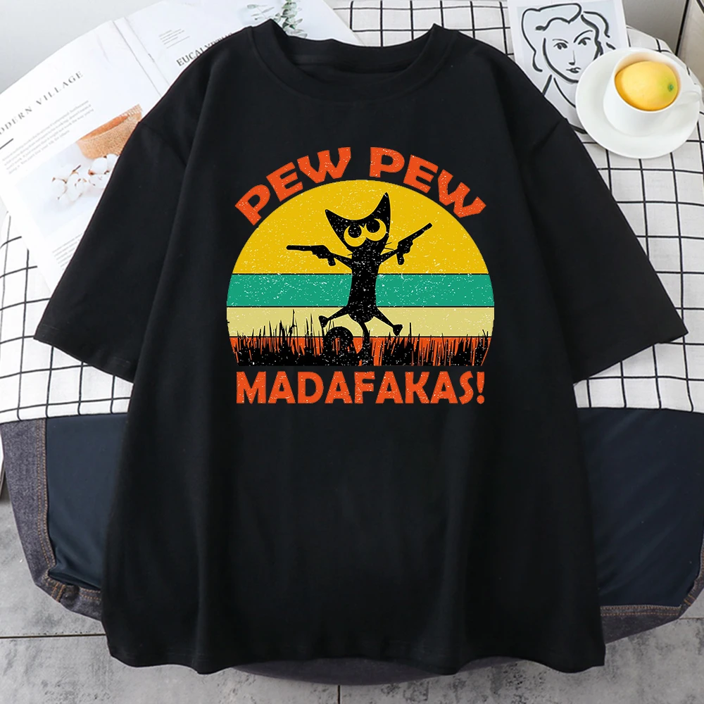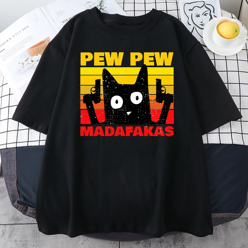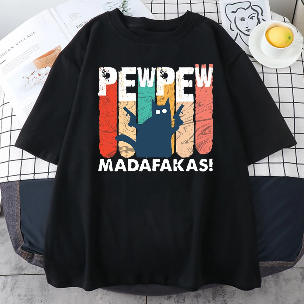 Мужская футболка Pew Madafakas, черная футболка с принтом кошек, модная брендовая футболка оверсайз для мужчин, повседневные топы с коротким рукавом