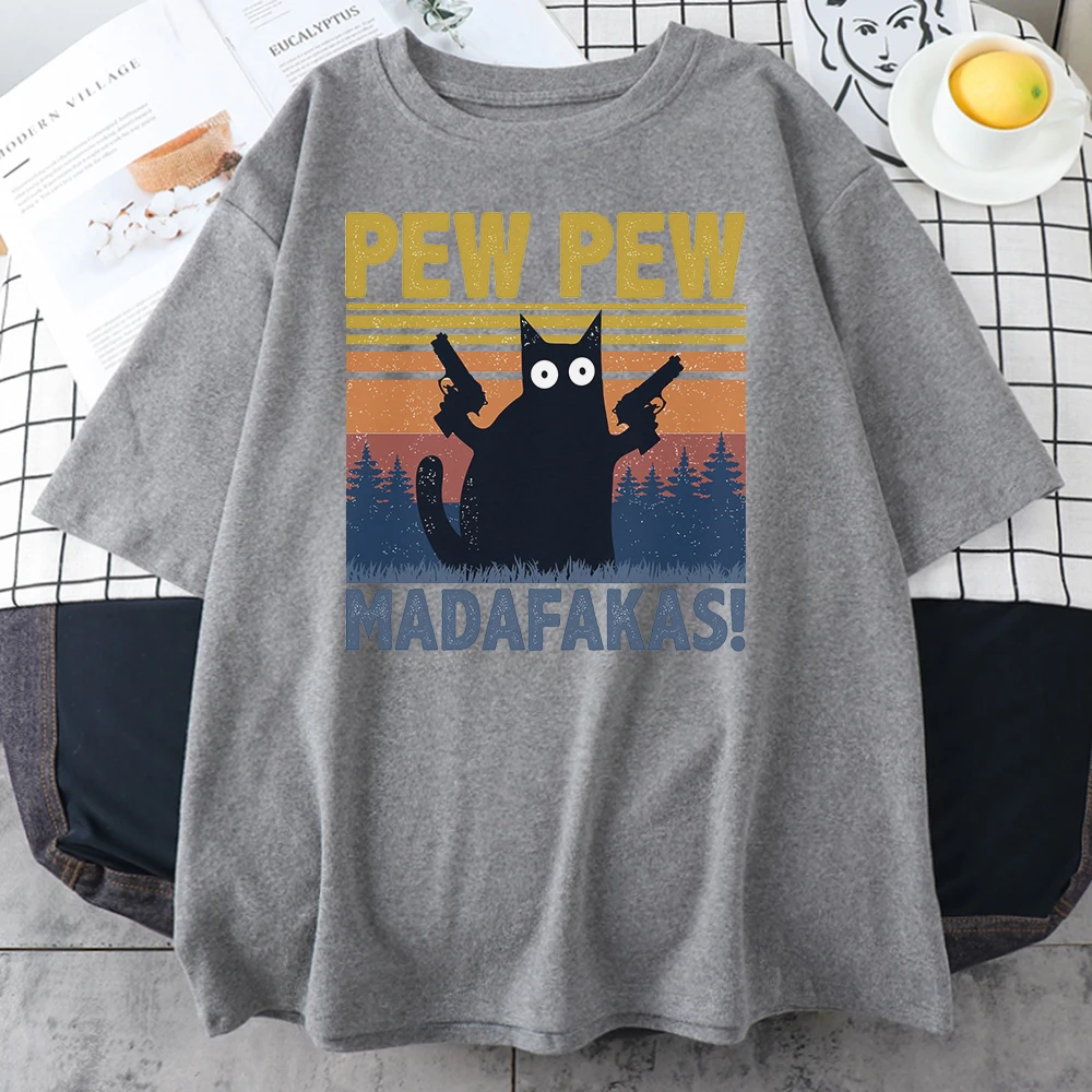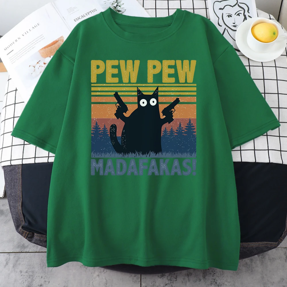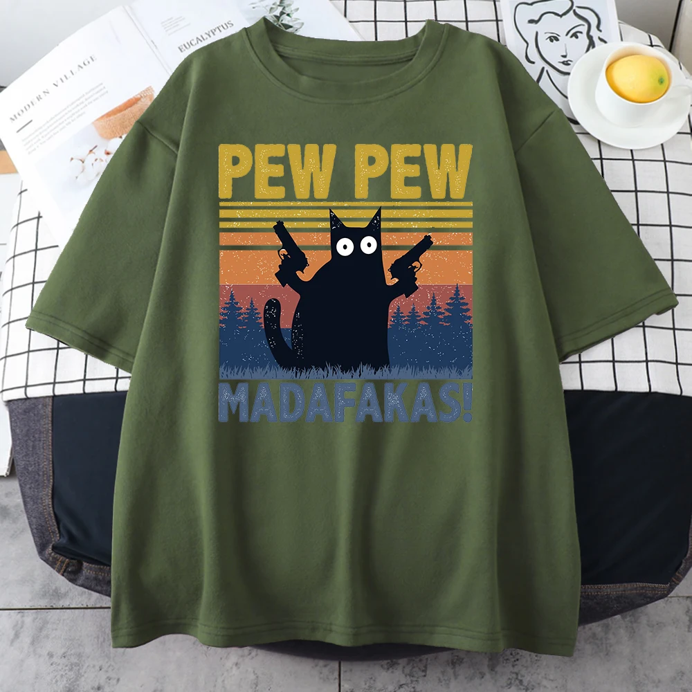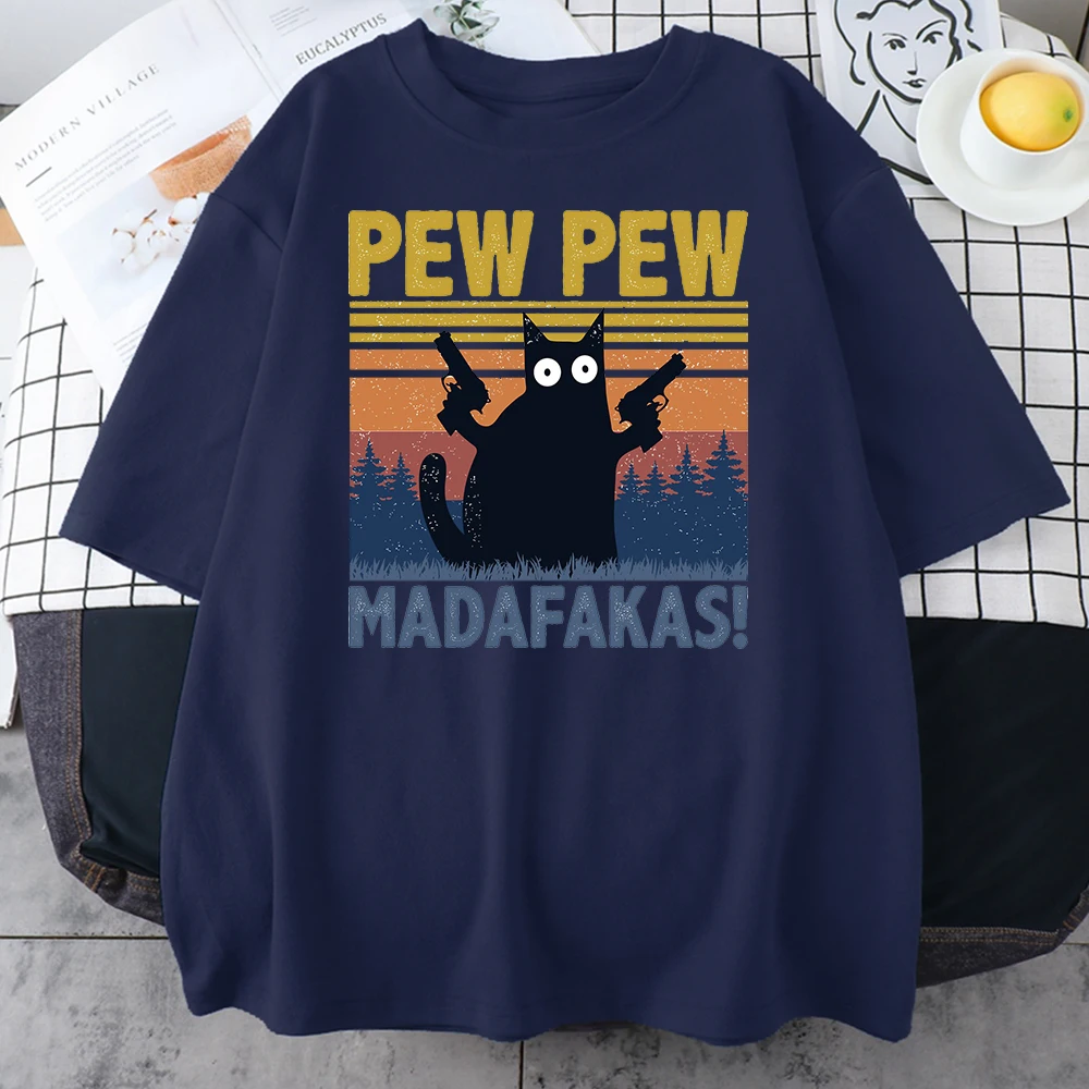 Мужская футболка Pew Madafakas, черная футболка с принтом кошек, модная брендовая футболка оверсайз для мужчин, повседневные топы с коротким рукавом